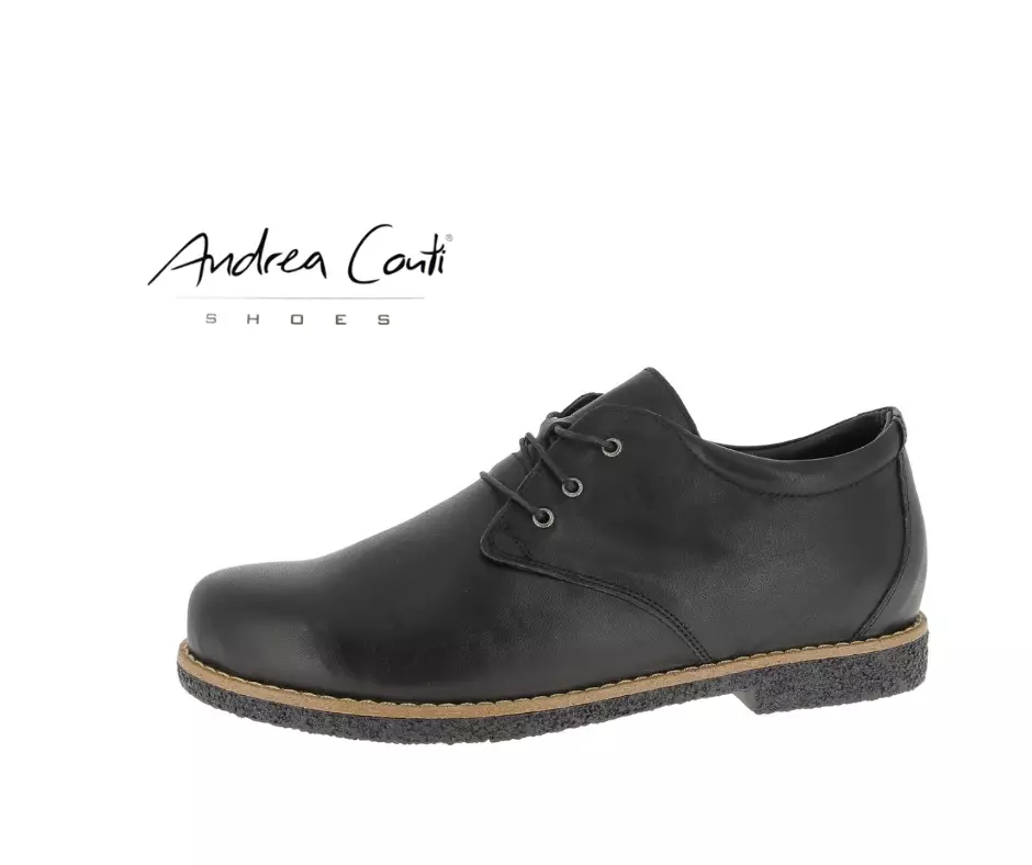 Andrea Contin pehmeästä nahasta valmistetut kävelykengät, joissa edessä sirot solmittavat nauhat. Tennareissa on paksu, irroitettava ja pehmustettu nahkapintainen pohjallinen. Myös vuoriosat ovat kauttaaltaan hengittävää ja pehmeää nahkaa. Kumisekoitepohja on hyvin kuvioitu ja ehkäisee tehokkaasti luistamista erilaisilla pinnoilla. Pohjan korkeus kannassa n. 2,5 cm.Normaali/tilavahko lesti.