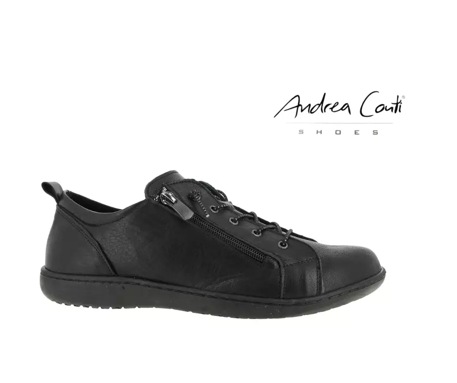 Andrea Contin pehmeästä nahasta valmistetut tennarit, joissa sirot joustinnauhat (ei solmittavat). Päällisen molemmilla puolilla vetoketjut helpottamassa kengän pukemista. Myös vuoriosat ovat kauttaaltaan hengittävää ja pehmeää nahkaa. Tennareissa on paksu, irroitettava ja pehmustettu nahkapintainen pohjallinen. Joustavan ja pitävän ulkopohjan korkeus kannassa on n. 2 cm ja päkiän kohdalla n. 1 cm. Normaali lesti. Löydät tämän kengän värissä ruskea tuotenumerolla 0341043.