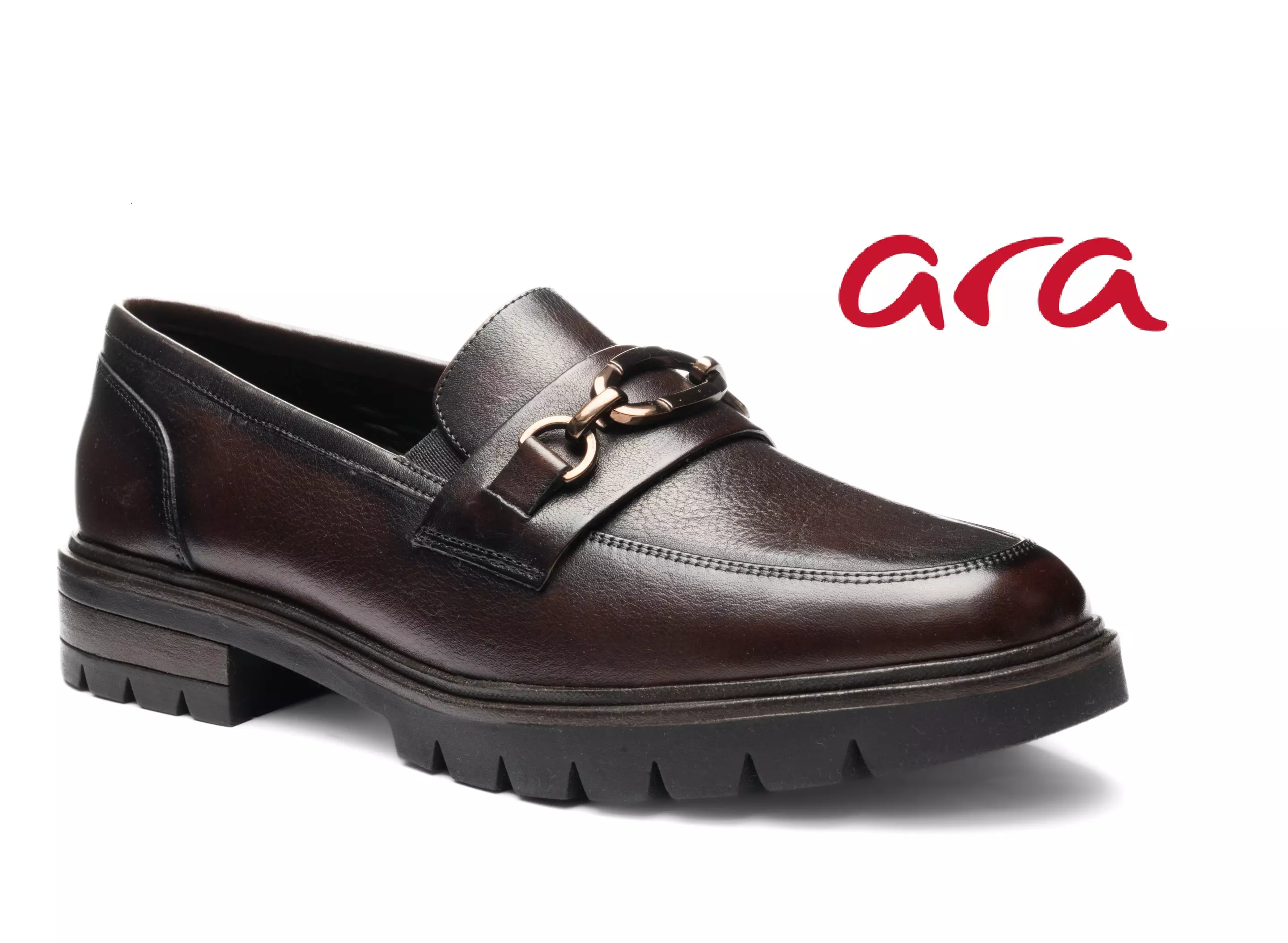 Aran laadukkaasta ja aidosta nahasta valmistetut sirot kävelykengät. Edessä siro ketjuyksityiskohta. Myös sisäosat ovat aitoa ja laadukasta nahkaa, ja kengissä on todella hyvin pehmustettu sekä muotoiltu nahkapintainen Aran High Soft -pohjallinen. Pohjan korkeus kannassa on n. 3 cm ja päkiän kohdalla n. 2 cm. Kuvioitu ulkopohja on valmistettu termoplastisesta kumista ja on joustava sekä taipuisa. Tässä kengässä on hieman normaalia kapeampi, F 1/2 lesti. Löydät tämän kengän mustana tuotenumerolla 12-11219.