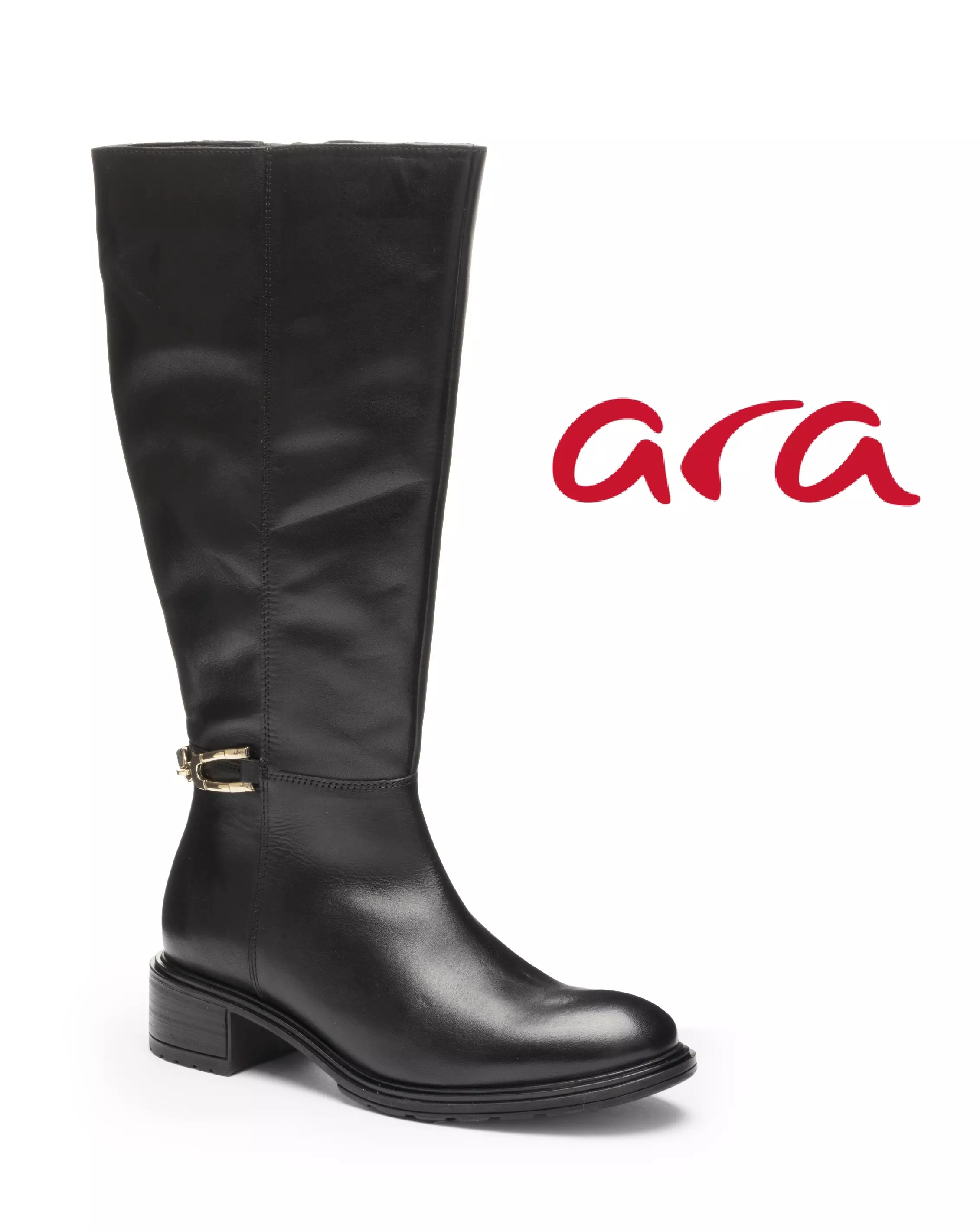 Aran korkeavartinen saapas, jonka päälliosat on valmistettu aidosta ja laadukkaasta nahasta. Sisäsyrjän vetoketju mahdollistaa helpon ja nopean pukemisen. Ulkosyrjällä tyylikäs kullansävyinen solkiyksityiskohta. Kengässä on hyvin pehmustetun, muotoillun ja irrotettavan High Soft -pohjallisen pintaa myöten kevyehkö tekstiilivuori. Kuvioitu ja joustava TR-kumista valmistettu ulkopohja lisää kengän pitoa erilaisilla pinnoilla ehkäisten pohjan luistamista. Koron korkeus n. 4 cm. Tässä kengässä on normaali G-lesti.