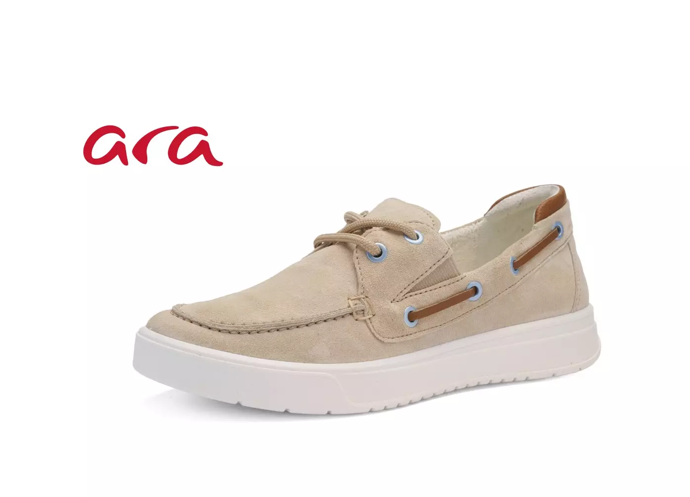 Aran laadukkaasta ja aidosta nahasta valmistetut ROM-purjehduskengät. Kengän suuaukon reunusta kiertää purkkarihenkisesti siro nahkaremmi. Jalkapöydän molemmin puolin sirot joustinosiot, jotka mahdollistavat jalkapöydän päälle parhaan mahdollisen istuvuuden. Edessä sirot solmittavat nauhat.