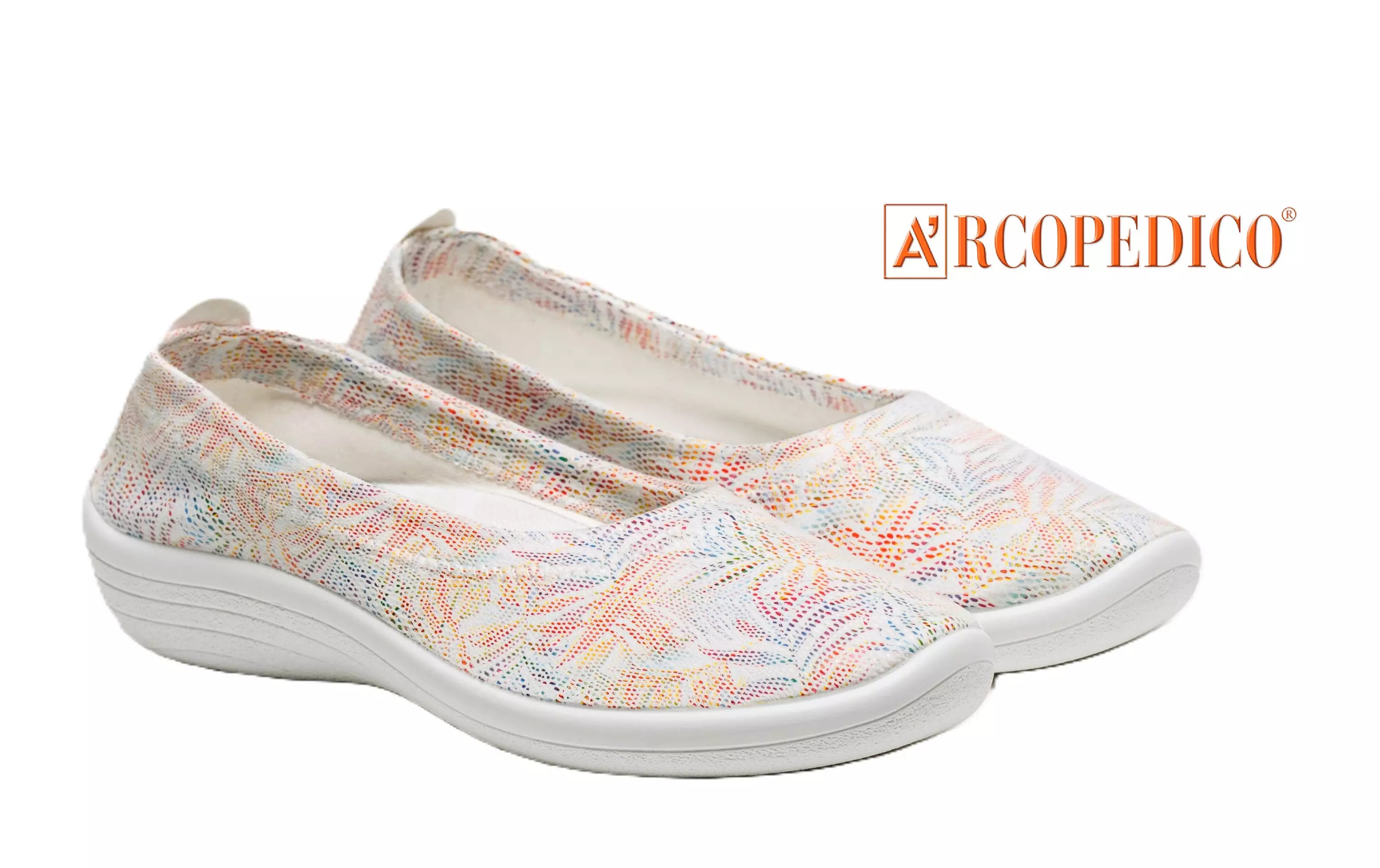 Arcopedicon kevyet ja joustavasta materiaalista valmistetut Gauja balleriinat. Todella joustavan pintamateriaalin ansiosta tämä kenkä sopii myös monelle enemmän tilaa tarvitsevalle jalalle. Päällisen kirjava kuviointi antaa kengällä raikkaan ilmeen. Miellyttävän pehmeästä materiaalista valmistettu tekstiilipintainen irrotettava pohjallinen on kevyesti muotoiltu sekä hyvin pehmustettu. Kengän pohjan muotoilu on suunniteltu tukemaan erityisesti jalan holvikaarta, ja sen korkeus kannassa on n. 3 cm. Tämä kenkä vaatii vain vähän tilaa ja on mielettömän kevyt, mikä tekee siitä erityisen helpon matkakaverin pienempäänkin laukkuun pakattavaksi! Monikäyttöiset, loistavasti esimerkiksi kaupunkikävelyyn, työkengäksi tai tanssikengäksi soveltuvat kengät sopivat siistin ulkomuotonsa puolesta käytettäviksi myös esimerkiksi mekkojen ja hameiden kanssa juhlavimmissakin tilanteissa. Kengät on valmistettu Euroopassa, Portugalissa.
