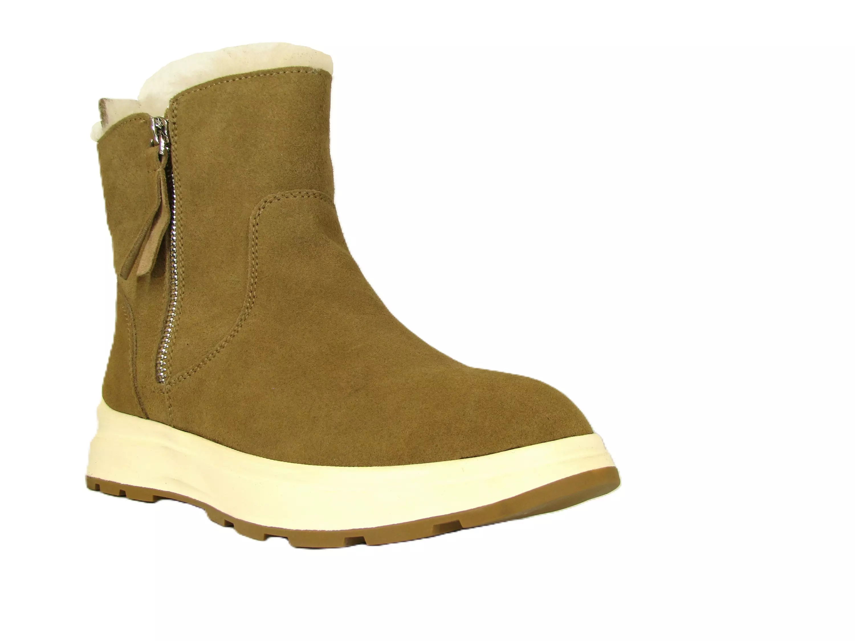Askel-talvinilkkuri, jonka päälliosat on valmistettu aidosta ja laadukkaasta mokkanahasta.Etuosan molemmin puolin vetoketjut helpottamassa jalkaan pukemista. Sisäsyrjän vetoketju helpottaa kengän pukemista, ja ulkosyrjän vetoketju tuo kenkään tyylikästä ilmettä. Sisäosissa on pohjallisen pintaa myöten todella pehmeä, paksu ja lämmin tekstiilivuori. Kumisekoitteesta valmistettu ulkopohja on hyvin kuvioitu ja ehkäisee tehokkaasti luistamista erilaisilla pinnoilla. Pohjan korkeus kannassa on n. 3,5 cm. Normaali lesti.