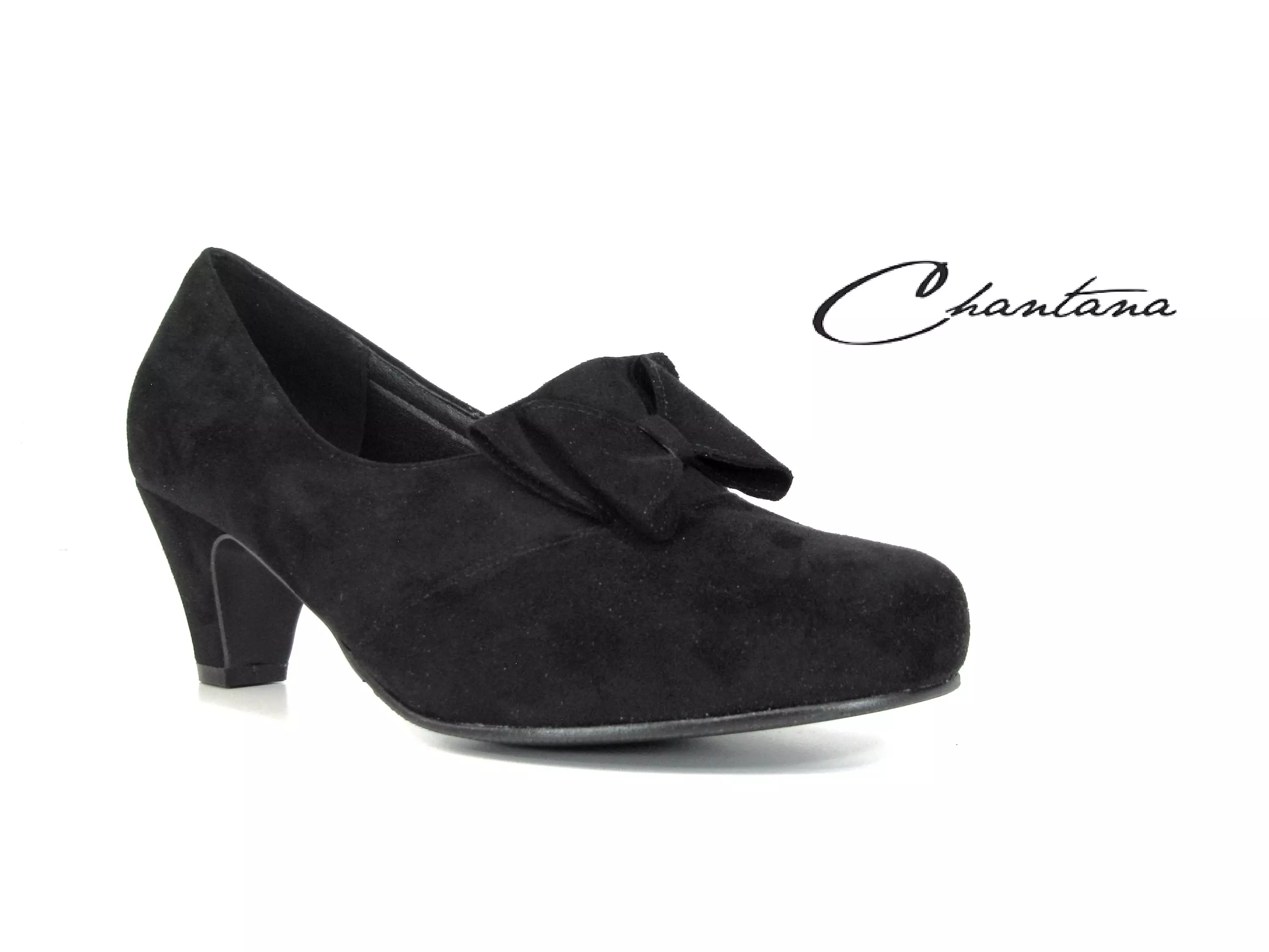 Chantanan upeat laajalestiset juhlakengät, joiden päälliosat on valmistettu laadukkaasta synteettisestä materiaalista. Edessä kaunis rusettiyksityiskohta. Kenkien vuori on pehmeää tekstiiliä. Hyvin pehmustetun, kevyesti muotoillun ja kauniisti viimeistellyn pohjallisen pinta on suurimmalta osalta nahkaa. Siron mutta tukevan, hieman viistomaisen koron korkeus on n. 6cm. Korko asettu keskelle kantapäätä tukevoittaen askelia. Ohut pohja on sileä, taipuisa ja soveltuu hyvin esimerkiksi tanssimiseen. Chantanan kengät ovat suomalaista suunnittelua. Tässä mallissa on normaalia tilavampi lesti sekä korkeampi sisämitta.