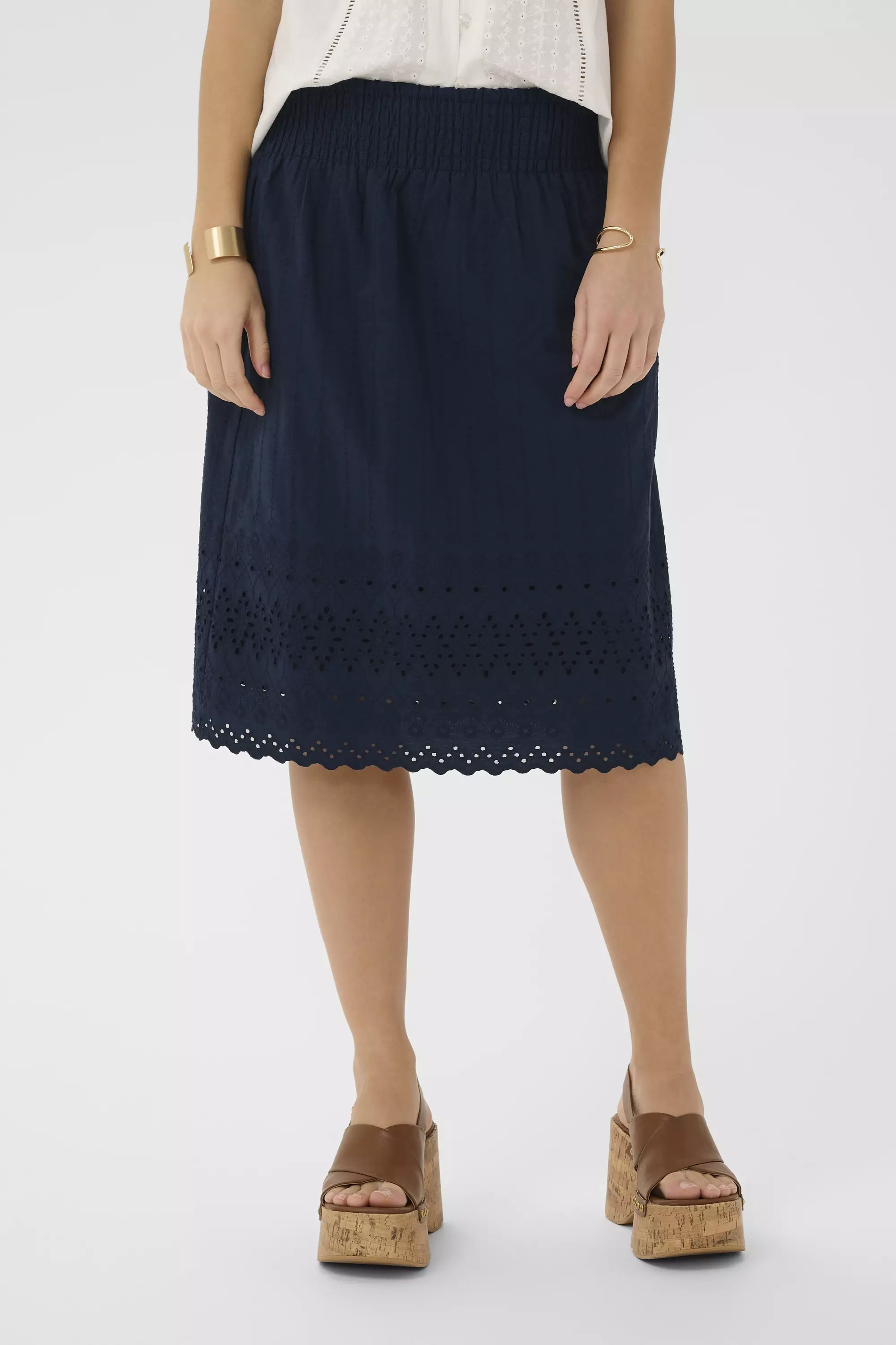 Creamin CRJana hame, jonka yläosassa kaunis smokkirypytys ja kaunista sydämien muotoista kohokuviointia. Lisäksi helmassa siro rei'itys. Materiaalina 100 % puuvilla . Mitat koossa 38: vyötärön... Lue lisää