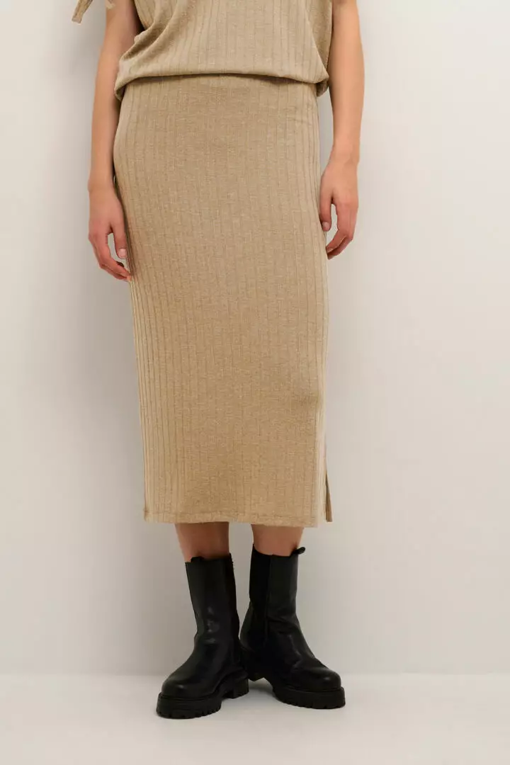 Creamin tyylikäs ribbihame. Ihanan joustava materiaali, helman ulkosivulla kauniit halkiot. Materiaalina 77% polyesteriä, 20% viskoosia, 3% elastaania. Kestää 30-asteisen konepesun erittäin... Lue lisää
