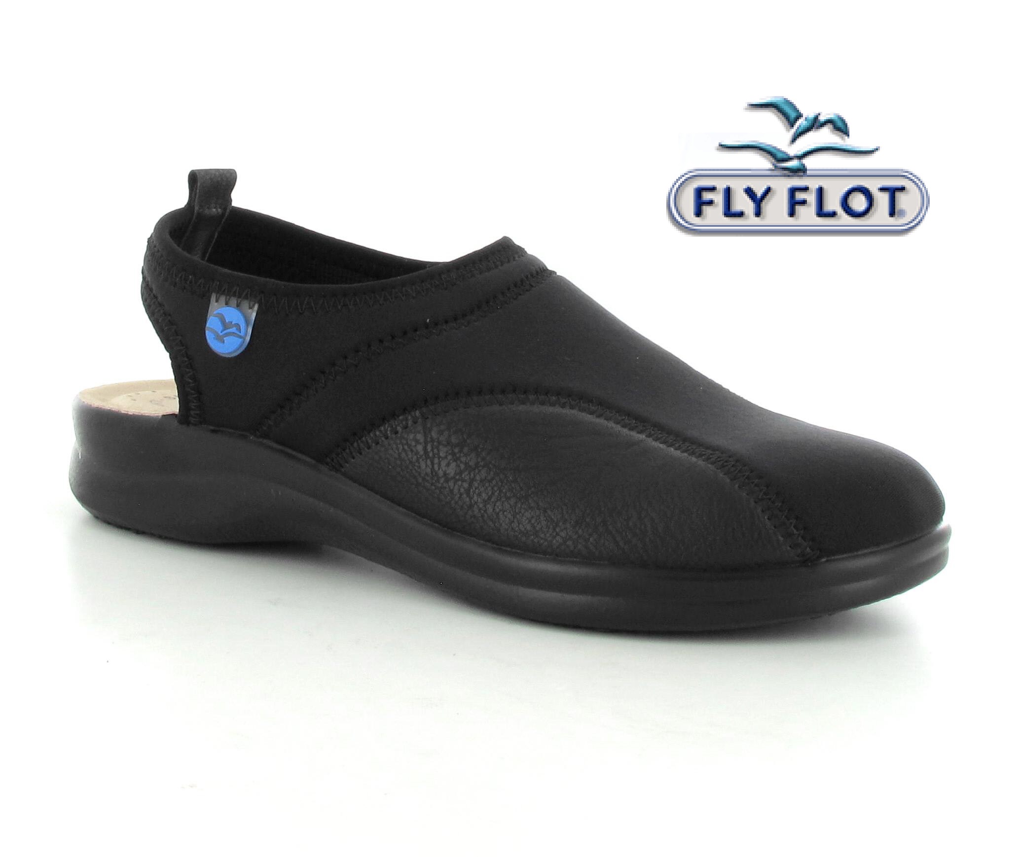 Fly Flot kärjestä umpinaiset työkengät, jotka valmistettu joustavasta strech-materiaalista. Sivuilla on joustavaa keinonahkaa. Joustava materiaali helpottaa pukemista. Takaremmi pitää kengät tukevasti jalassa. Vuori hengittävää ja mukavaa verkkoneulosta. Sandaaleissa on mukavasti pehmustettu ja hengittävä, sekä jalan mukaan muotutuva nahkapintainen pohjallinen. Kiilamainen muotoiltu pohja on joustava ja taipuisa ja kanta hyvin vaimennettu. Takana korkeus n. 3,5 cm. Todella kevyet työkengät.