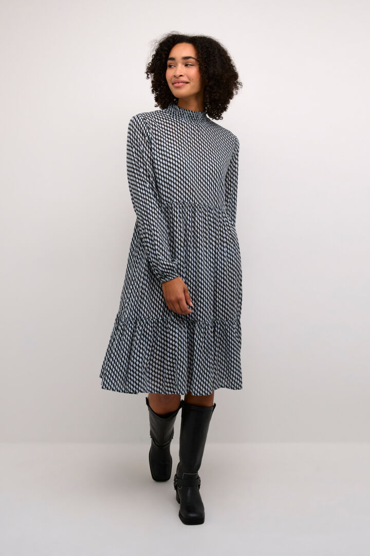 Kaffen pitkähihainen KAamber mekko, jossa keveysti pysytymallinen pääntie.