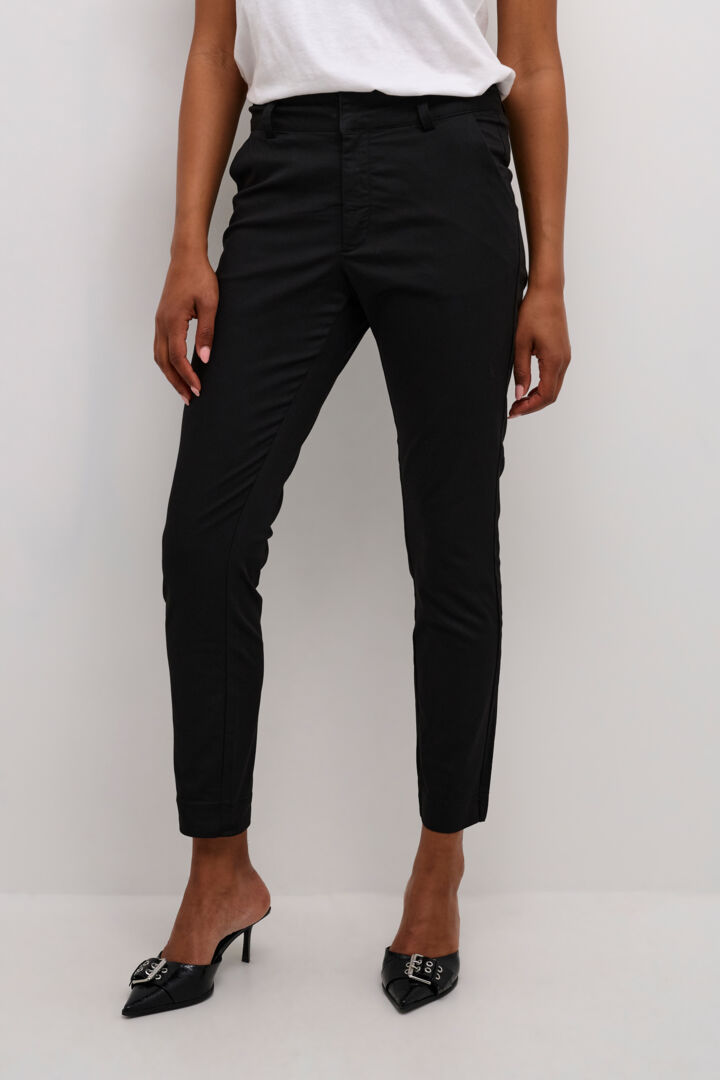 Kaffen joustavat nilkkapituiset ja kapealahkeiset KAlea chinot. Normaalikorkuinen vyötärö, jossa liukuvat piilonapit, vetoketju, sekä vyönlenkit. Molemmilla sivuilla taskut. Normaali istuvuus.