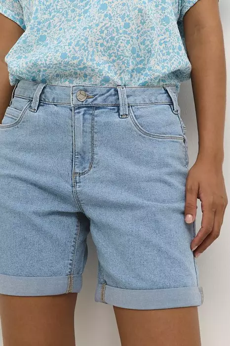 Kaffen ihanat KAvicky farkkushortsit. Normaalikorkuinen joustava vyötärö, jossa neppi- ja vetoketjukiinnitys sekä vyönlenkit. Molemmilla sivuilla sekä takana taskut. Normaali istuvuus.
