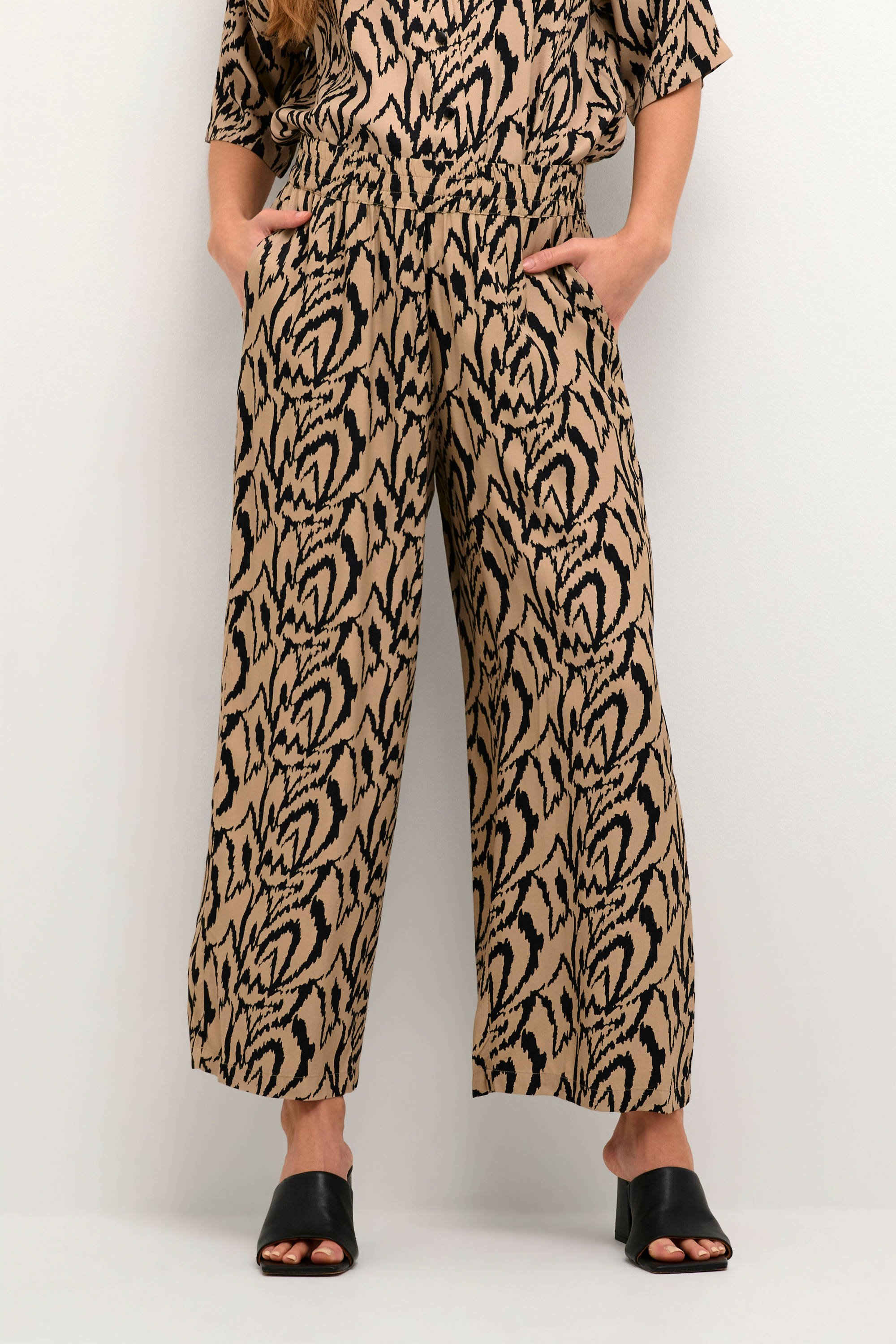 Kaffen ihanat leveälahkeiset suorat housut joustavalla vyötäröllä. Tämä ihana malli sopii niin arkeen kuin juhlaan - tyyliä saa helposti muokattua esimerkiksi erilaisilla kengillä sekä asusteila. Materiaalina 100% viskoosi, jonka ansiosta housut ovat ihanteelllisen kevyet, hengittävät sekä helppohoitoiset. Kestää 30-asteisen konepesun hellävaraisella pesuohjelmalla. Huom! Vaatteen pesulapun mukaan vaate saattaa kutistua pesussa noin 8%.