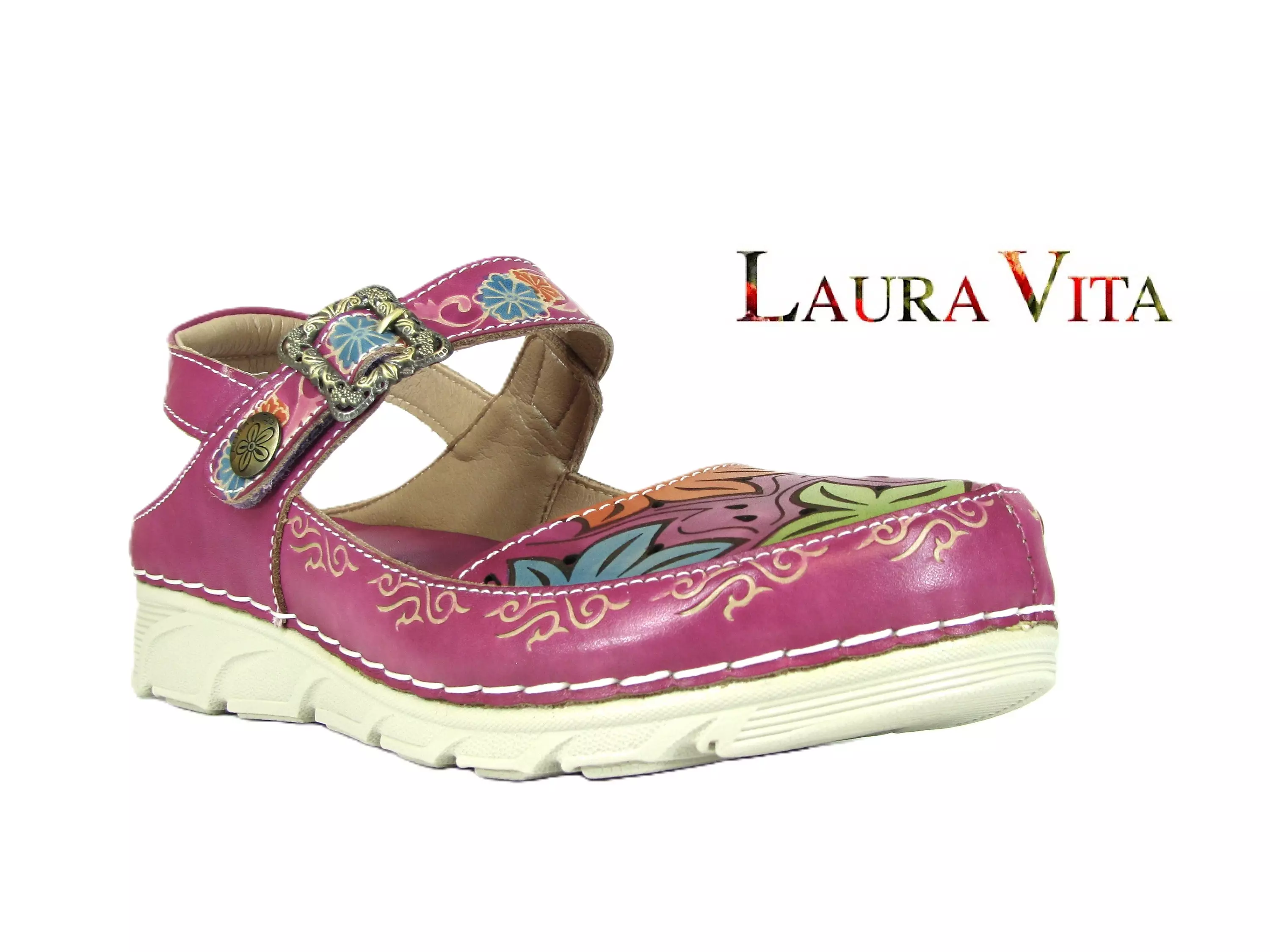 Laura Vitan ihanat Dorry sandaalit. Päälliosat ovat kauttaaltaan pehmeää ja laadukasta aitoa nahkaa. Etuosaa somistaa värikkäät kukkakuviot, ja etuosan nahkaleikkaukset lisäävät kengän... Lue lisää