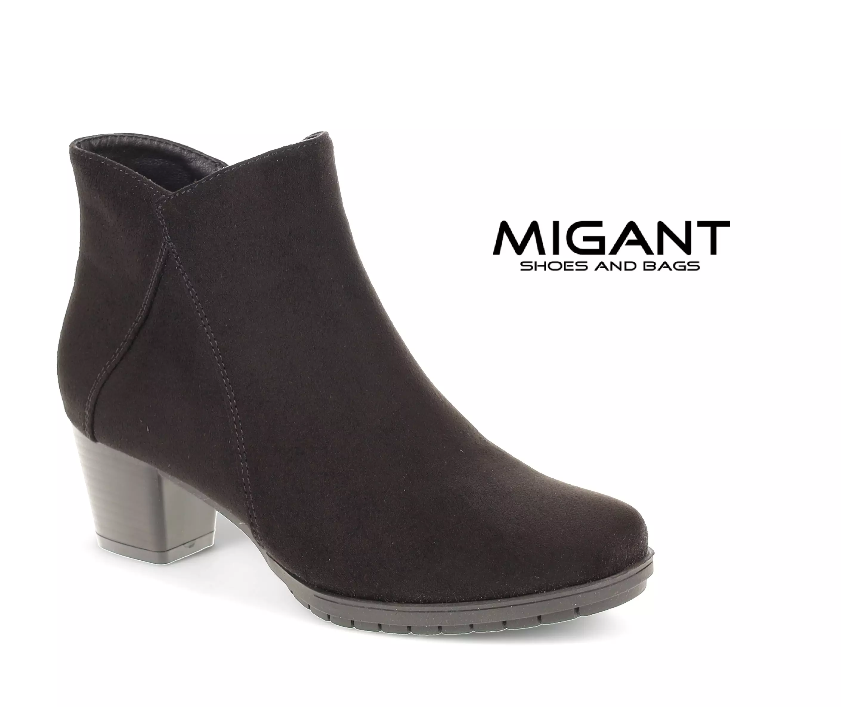 Migantin korkonilkkuri, jonka päälliosa on valmistettu tekstiilistä. Sisäsyrjän vetoketju helpottaa pukemista. Kengässä on pohjallisen pintaa myöten kevyehkö tekstiilivuori. Hyvin kuvioitu kumisekoitepohja edesauttaa kengän pitoa erilaisilla pinnoilla ehkäisten pohjan luistamista. Tukevan koron korkeus on n. 5 cm. Normaali lesti.
