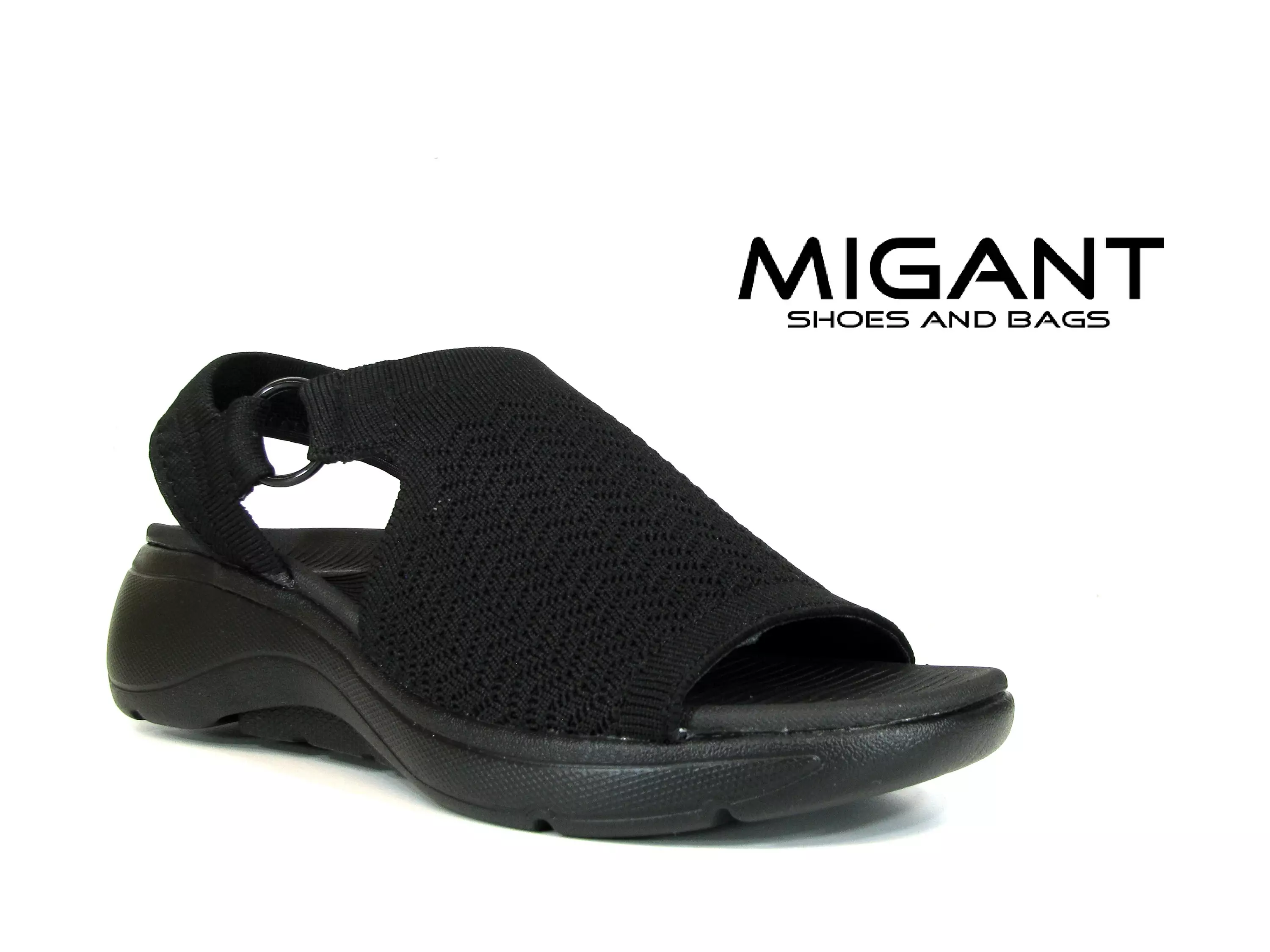 Migantin ihanteellisen kevyet sandaalit. Päälliosat miellyttävän pehmeää, hengittävää sekä napakkaa verkkotekstiiliä. Kantaremmi autta sandaalia pysymään tukevasti jalassa. Pohjallinen on miellyttävästi muotoiltu ja hyvin pehmustettu.Ulkopohja on hyvin kuvioitu, mikä ehkäisee yhdessä materiaalivalinnan kanssa luistamista erilaisilla pinnoilla. Pohjan korkeus kannassa n. 4,5cm, päkiän kohdalla n. 2cm.