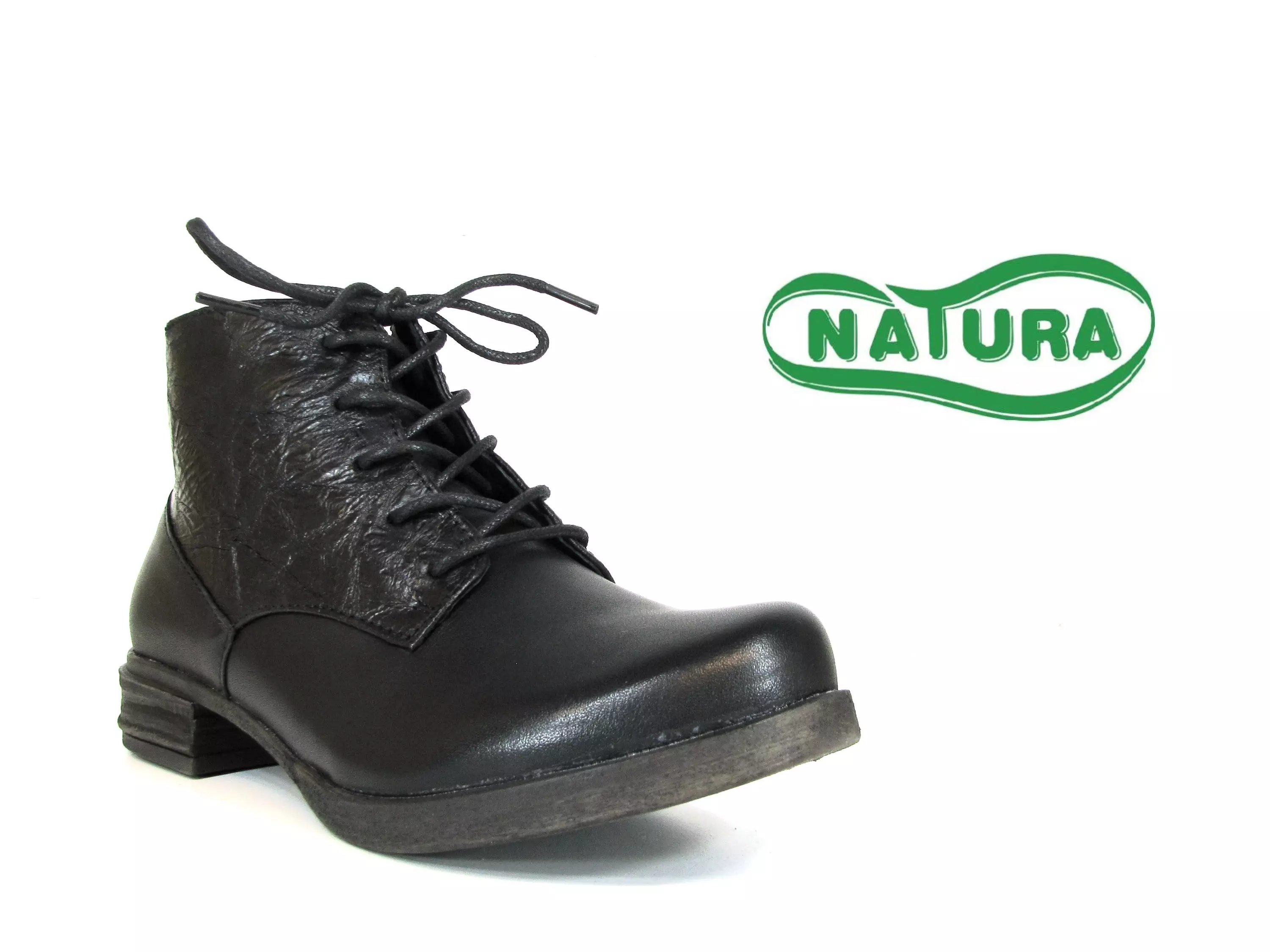 Naturan siron näköiset nilkkurit, joiden päälliosat on valmistettu aidosta ja laadukkaasta nahasta. Edessä nauhakiinnitys, jonka avulla kenkä on helppo säätää juuri jalkaan sopivaksi. Sisäsyrjällä vetoketju helpottamassa kengän pukemista. Sisäosissa kevyt tekstiilivuori. Pohjallisen pinta pehmeää huopamaista tekstiiliä. Kuvioidun ulkopohjan korkeus kannassa on n. 2,5 cm.