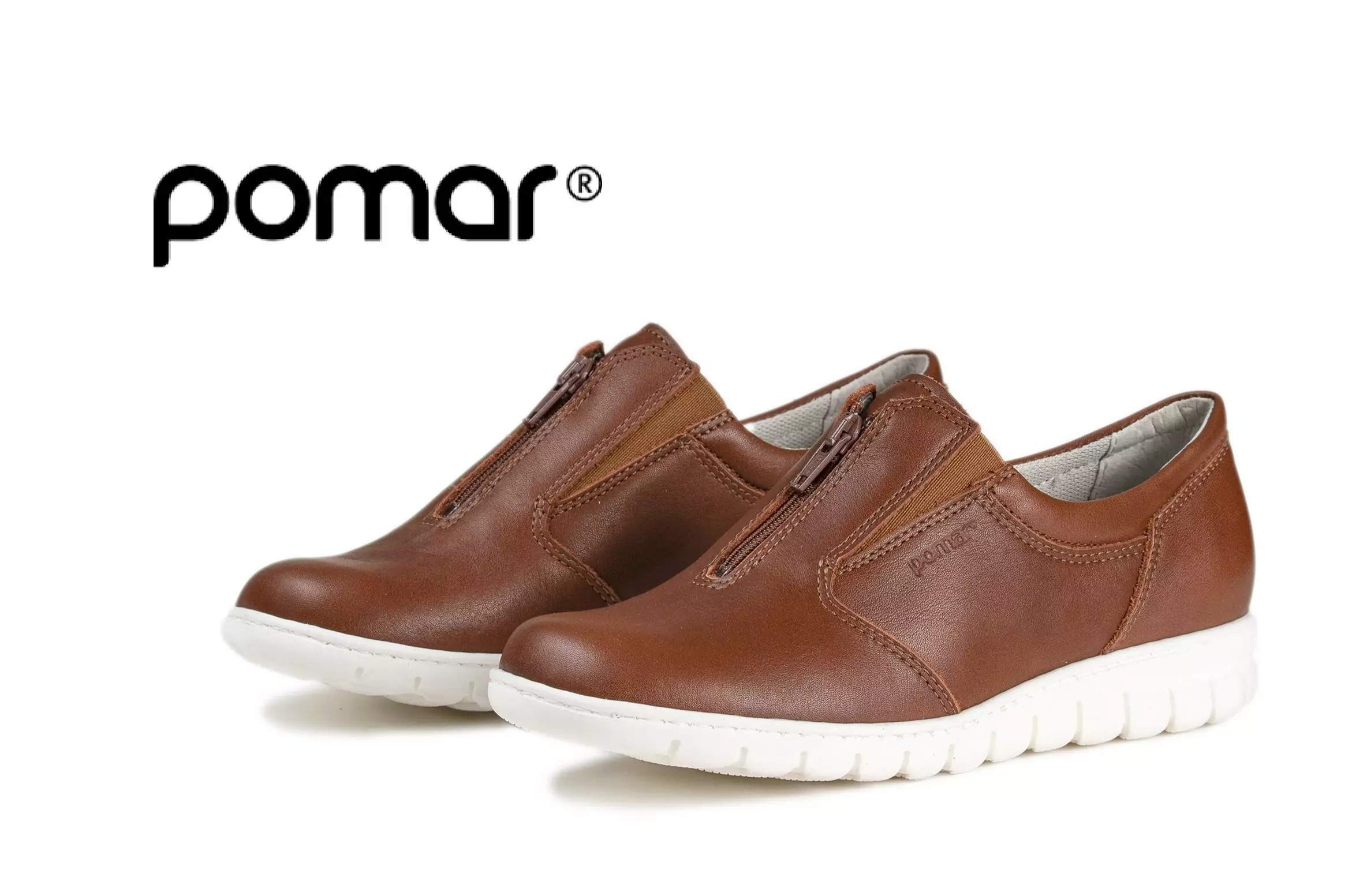 Pomarin tyylikkäät Esikko kävelykengät, joiden päällinen on valmistettu aidosta ja laadukkaasta nahasta. Palkapöydän päällä vetoketju helpottamassa pukemista. Vetoketjun molemmin puolin joustinhalkiot antamassa jalkapöydän päälle tarvittaessa lisätilaa sekä mahdollistamassa parhaan mahdollisen istuvuuden. Kengissä on irrotettavan pohjallisen pintaa myöten miellyttävä tekstiilivuori. Hyvin kuvioidun ja pitävästä materiaalista valmistetun ulkopohjan korkeus kannssa on n. 3 cm, päkiän kohdalla n. 1,5 cm. Kengät on suunniteltu Suomessa ja valmistettu EU-alueella. Pomarin kengissä on suomalaisen suunnittelun myötä tilava lesti.