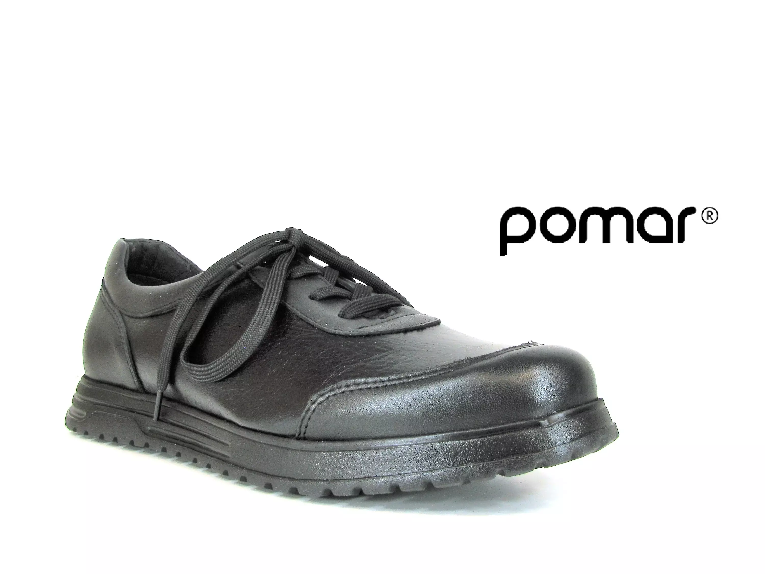 Pomarin laadukkaat nauhalliset kävelykengät erityisen tilavalla lestillä. Edessä nauhakiinnitys, jonka avulla kenkä on helppo säätää juuri jalkaan sopivaksi. Kengissä irroitettava, hyvin pehmustettu ja muotoiltu pohjallinen, jonka voi tarvittaessa vaihtaa esimerkiksi oman jalan mukaan tehtyyn pohjalliseen. Tässä kengässä on erityisen tilava lesti. Kumisekoitteesta valmistettu ulkopohja on kevyesti kuvioitu. Pomareissa yhdistyy laadukkaat materiaalit, käyttömukavuus ja vastuullisuus, sekä huolellinen suunnittelu käyettäväksi Pohjolan olosuihteissa.