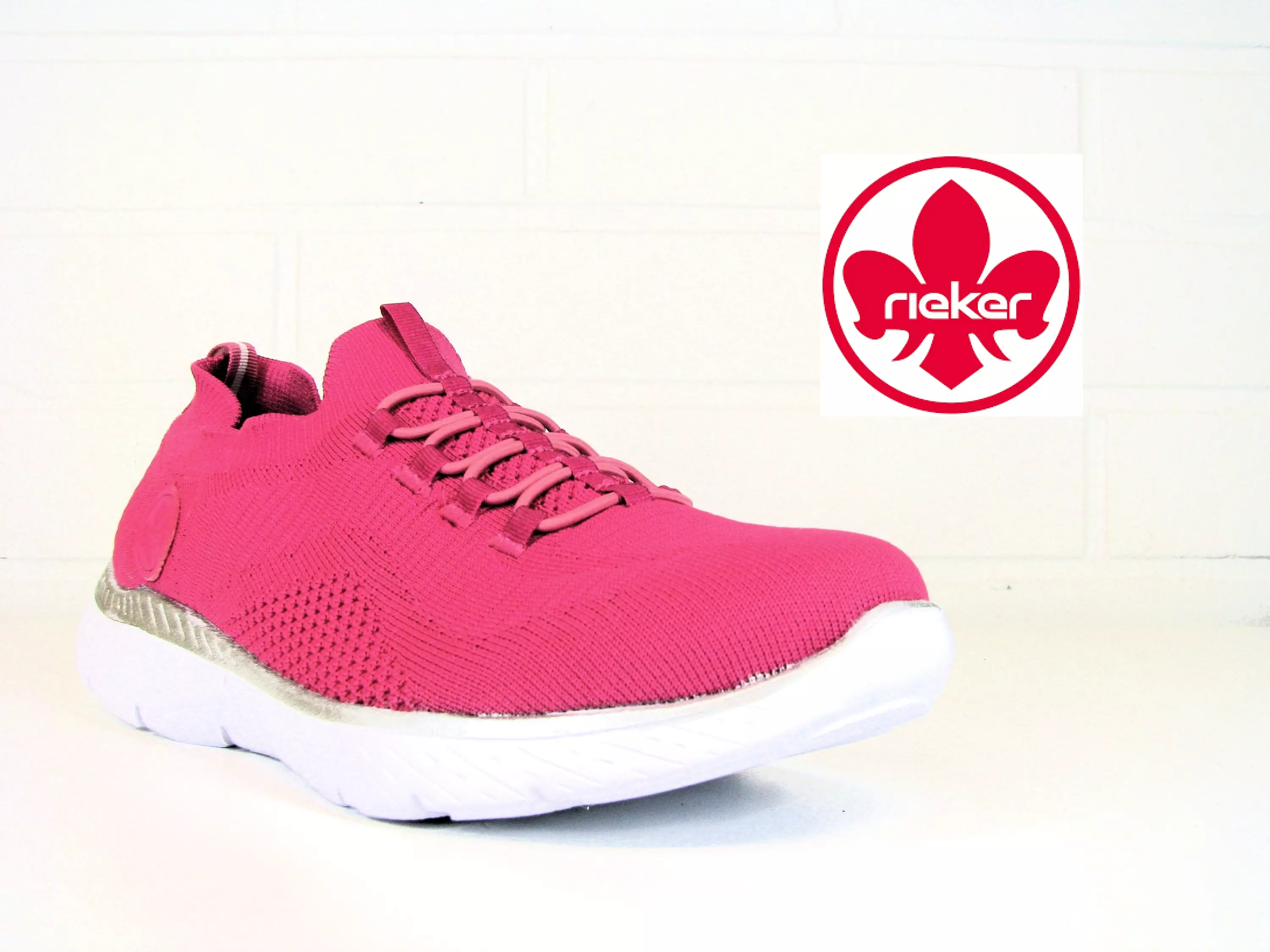 Riekerin siistit ja sporttiset sukkakengät joiden päälli- ja sisäosat on valmistettu tekstiilistä. Edessä somisteena joustinnauhat (ei solmittavat). Pohjallinen muotoutuu Memo Soft-ominaisuutensa ansiosta jalan painon alla juuri käyttäjän jalkaan sopivaksi. Tässä kengässä on Riekerille tyypillinen, mukavan tilava lesti. Kumisekoitteesta valmistettu joustava ja taipuisa ulkopohja on kevyesti kuvioiutu. Pohjan korkeus kannassa on n. 3cm. Löydät tämän kengän värissä bees koodilla M5074-64.