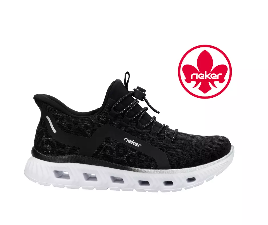 Riekerin tyylikkäät ja uskomattoman kevyet lenkkarit, joissa edessä vetonauhakiinnitys. Kengän kauniisti kiiltävä leopardikuvioitu ulkopinta on valmistettu laadukkaasta tekstiilistä sekä synteettisestä materiaalista.