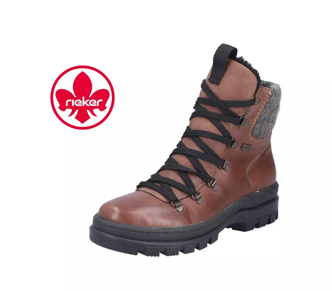 Riekerin vettähylkivälllä Tex-ominaisuudella sekä pitävällä OC System Tipper-liukumisenestojärjestelmällä varustetut nilkkurit. Päällinen on valmistettu laadukkaasta ja aidosta nahasta sekä kestävästä synteettisestä materiaalista. Edessä nauhakiinnitys, jonka avulla kenkä on helppo säätää juuri jalkaan sopivaksi. Sisäsyrjän vetoketju puolestaan nopeuttaa ja helpottaa pukemista. Tex-ominaisuutensa ansiosta kenkä pitää hyvin vettä ja tuulta auttaen jalkaa pysymään kuivana ja lämpimänä.