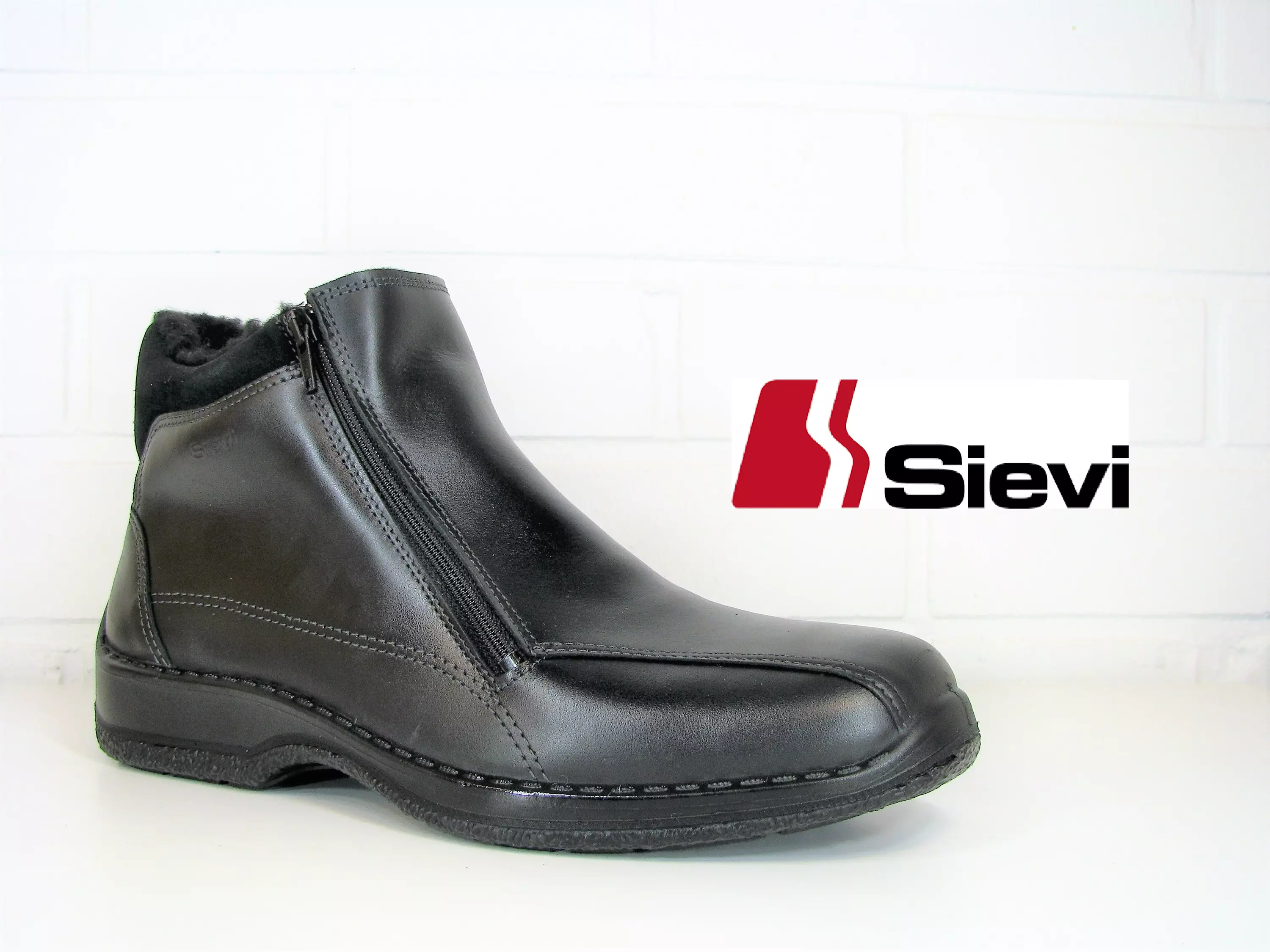 Sievin XL-lestiset Risto-nilkkurit, joiden päällioisat on valmistettu kestävästä pintanahasta. Kengän pinta on käsitelty vettä ja likaa hylkiväksi, jonka ansiosta kenkä sopii todella hyvin Suomen vaihteleviin sääolosuhteisiin. Kengän molemmin puolin olevat vetoketjut helpottavat kengän pukemista jalkaan mahdollistamalla etuosan laajan aukeamisen. Kengän sisäosissa on ihanan pehmeä ja lämmin aito villavuori. Irrotettavat Thermo Alu 2 -lämpöpohjalliset tuovat mukavuutta kylmiin olosuhteisiin heijastamalla tehokkaasti kylmää ulos ja lämmintä sisälle siirtäen tehokkaasti myös kosteutta. Pohjallisen alumiinikalvo heijastaa lämpöä sisään ja kylmää ulospäin. Nilkkureissa on joustava FlexStep -pohja, joka on miellyttävän joustava sekä ehkäisee tehokkaasti liukastumista. Suosittelemme suojasuihkeen käyttöä kenkien suojaamiseksi sekä niiden käyttöiän lisäämiseksi.