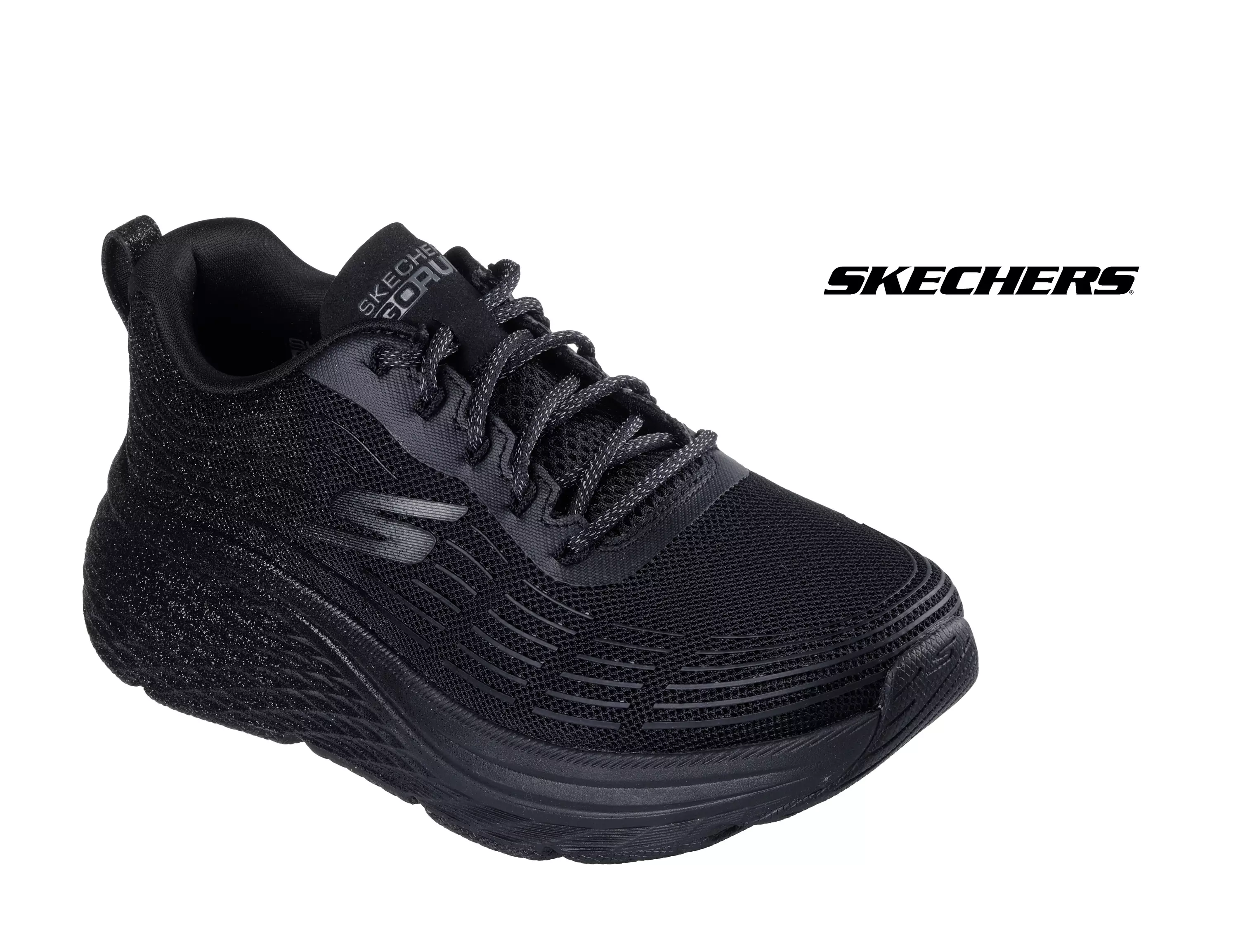 Skechersin Max Cushioning Elite 2.0 - Alva lenkkarit, joiden etuosassa solmittava nauhakiinnitys, jonka ansiosta kenkä on helppo säätää juuri jalkaan sopivaksi. Päällinen on miellyttävän pehmeää ja hyvin hengittävää mesh-verkkotekstiiliä. Kengän kantapäästä eteenpäin leviävä hopeinen alue tuo kenkään loisteliaan ilmeen.
