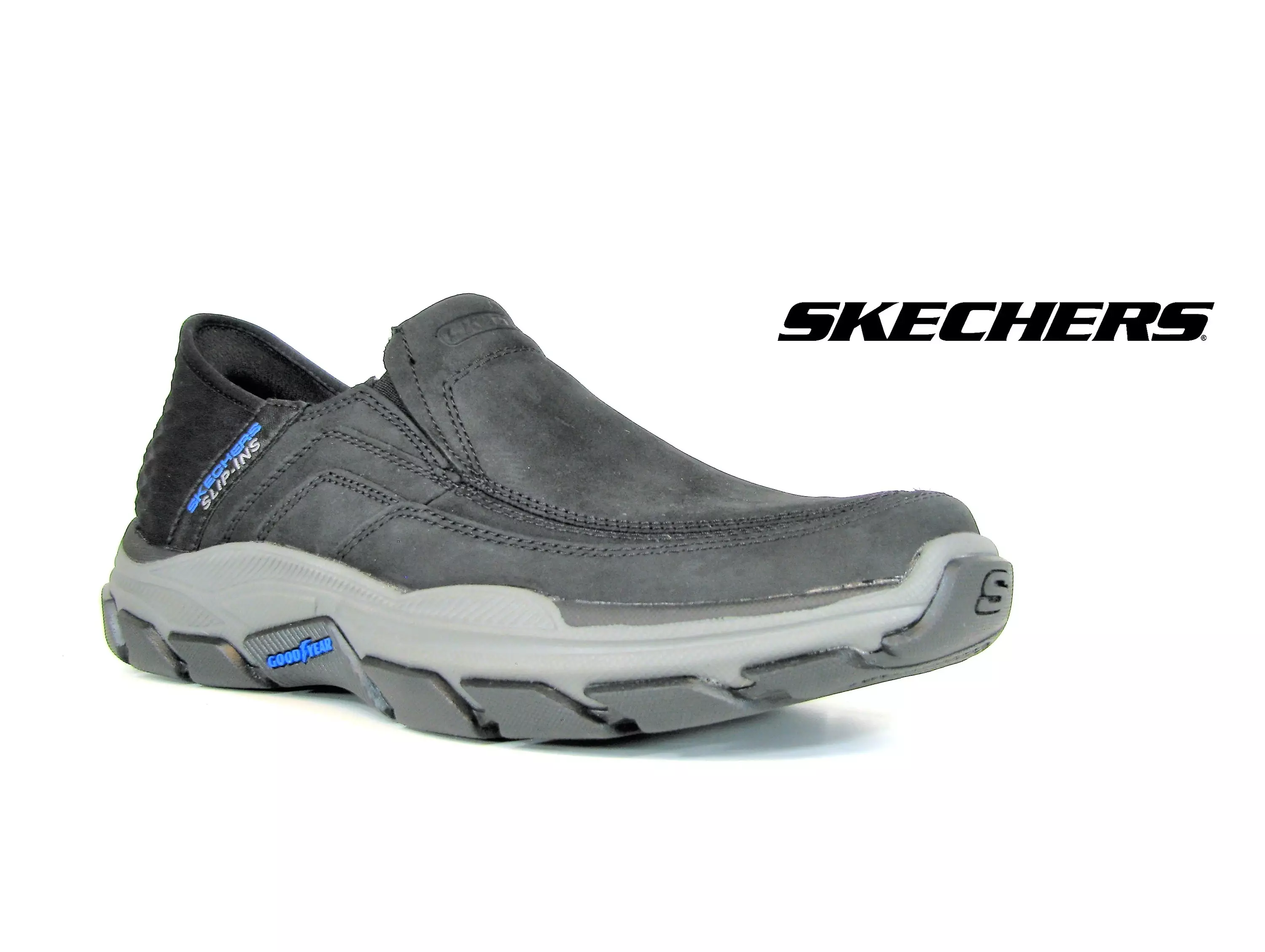 Skechersin Slip-ins kävelykengät, joiden kantapään nerokas muotoilu tekee kengästä äärimmäisen helpon pukea. Kantapään tukeva ulkopinta ja sisäosan pyöreys mahdollistavat kengän helpon pukemisen ilman kenkälusikkaa - kenkä kirjaimellisesti vain painetaan jalkaan. Pyöreästä muotoilusta huolimatta kenkä pysyy tukevasti jalassa. Kengän päällinen on valmistettu aidosta ja laadukkaasta nahasta sekä tekstiilistä. Etuosan molemmin puolin sijoitetut pienet joustinhalkiot mahdollistavat parhaan mahdollisen istuvuuden sekä helpottavat entisestään kengän pukemista sekä riisumista. Kengän sisäosat ovat kauttaaltaan miellyttävän pehmeää tekstiiliä. Kengän pohjallisessa yhdistyy kaksi Skechersin huippusuosittua pohjallisominaisuutta; Memory Foam sekä Goga Mat. Memory Foam -ominaisuuden ansiosta pohjallinen mukautuu jalan painon alla juuri jalkaan sopivaksi, ja holvikaaren Goga Mat-pinta mahdollistaa ihanteellisen hengittävyyden. Tukeva ja hyvin kuvioitu Good year Steady Grip -pohja mahdollistaa hyvän vakauden sekä todella hyvän pidon useimmilla eri pinnoilla. Pohjassa käytetty kumi on todella kestävää tehden kengästä todella pitkäikäisen. Pohjan korkeus kannassa on n. 3,5cm. Kengässä on mukavan tilava lesti.