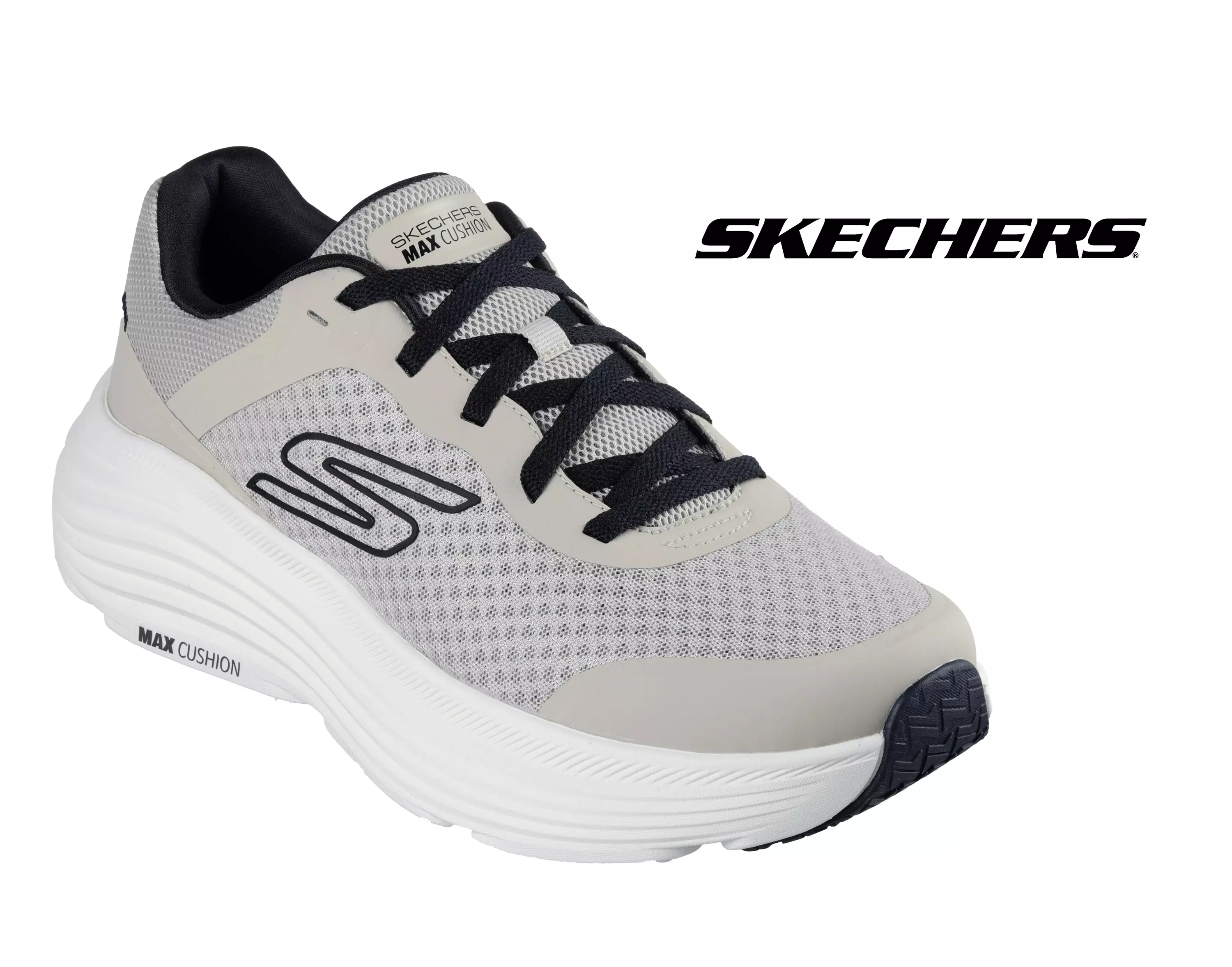 Skechersin huippulaadukkaat Max Cushioning Endeavour juoksukengät. Edessä solmittava nauhakiinnitys, jonka ansiosta kenkä on helppo säätää juuri jalkaan sopivaksi. Päällinen on miellyttävän pehmeää ja hyvin hengittävää mesh-verkkotekstiiliä.