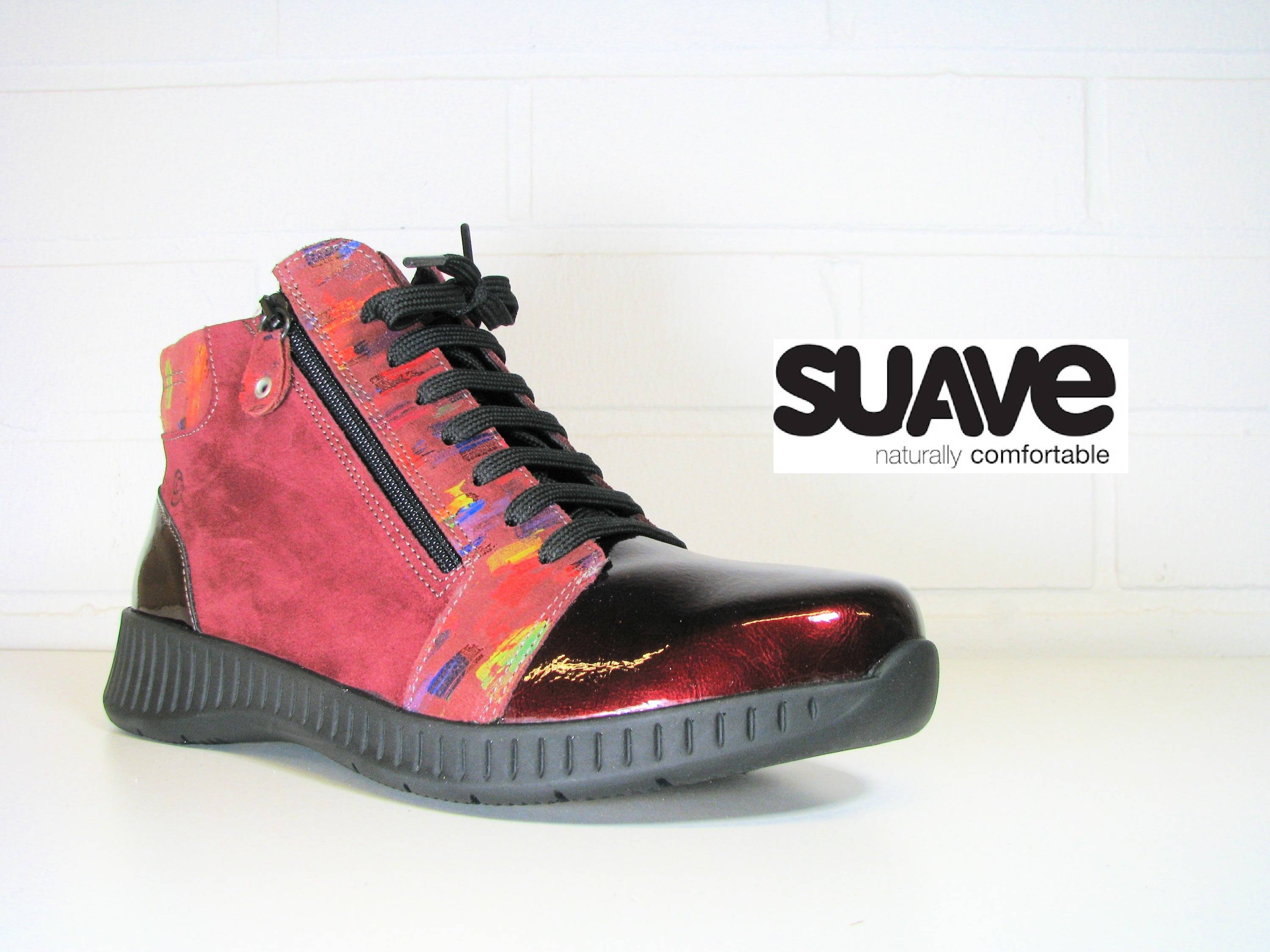 Suaven tilava Geneve nilkkuri, jonka päälliosa on valmistettu aidosta ja laadukkaasta nahasta lakeeriosuuksia lukuunottamatta. Edessä nauhakiinnitys tuomassa kenkään hyvät säätömahdollisuudet. Kengän sisäosat ovat miellyttävän pehmeää tekstiiliä, ja irrotettava pohjallinen on hyvin pehmustettu sekä anatomisesti muotoiltu. Air Function ominaisuus aikaansaa ilman kiertämisen kantapään ja jalkapohjan välillä tehden kengästä hengittävän sekä nopeasti kuivuvan. Synteettisestä materiaalista valmistettu kevyesti kuvioitu ulkopohja on joustava, mutta samaan aikaan todella tukeva. Pohjan korkeus kannassa on n. 3-3,5cm. Näissä kevyissä, antiallergisissa kengissä on huomioitu myös ekologisuus, iskunvaimennus sekä erityisen tilavat sisäosat.