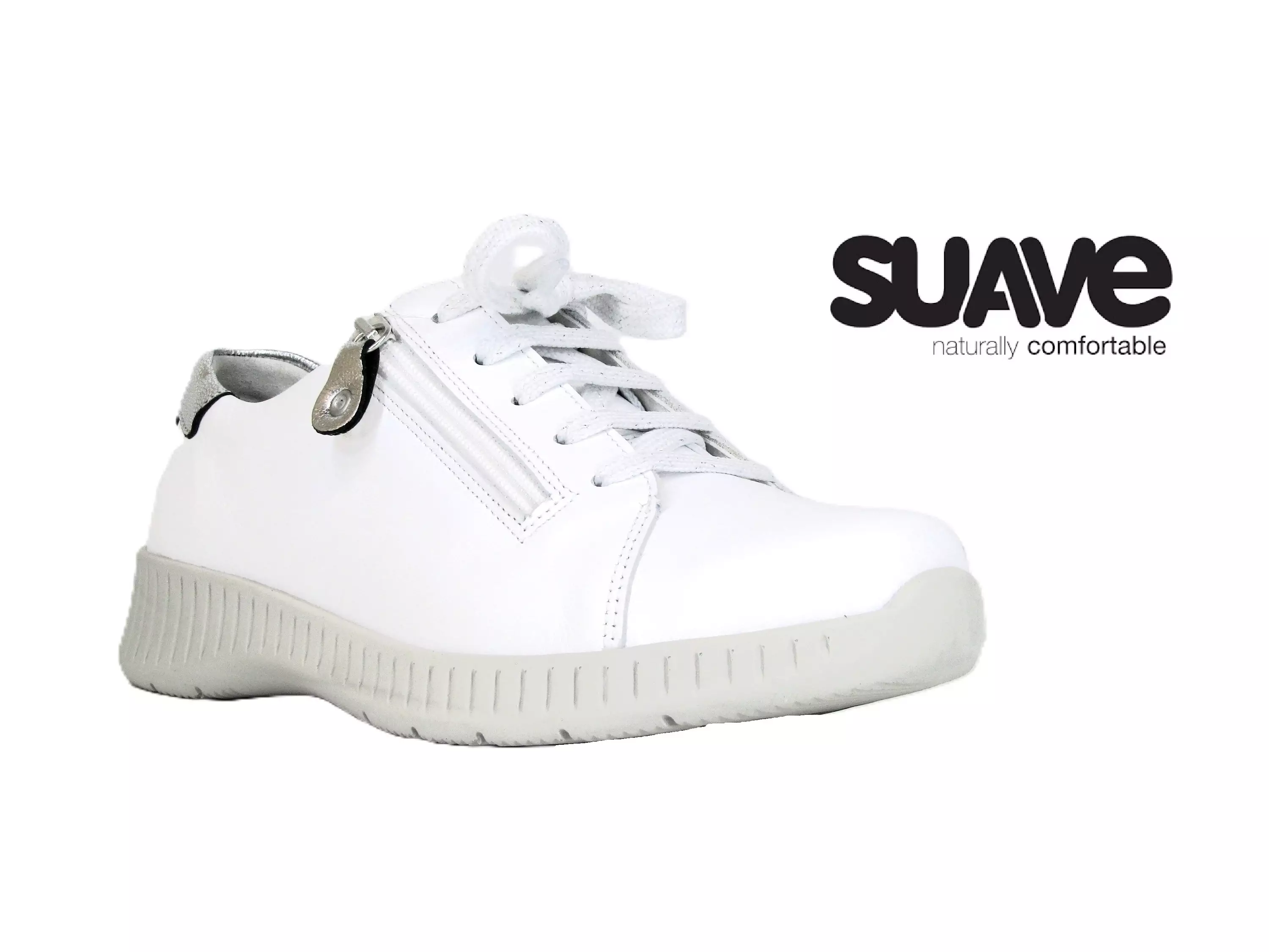 Suaven tilava Geneve-kävelykenkä, jonka päälliosa on valmistettu aidosta ja laadukkaasta nahasta. Edessä nauhakiinnitys, jonka avulla kengän saa säädettyä juuri jalkaan sopivaksi. Ulkosyrjän vetoketju helpottaa kengän pukemista. Irrotettava pohjallinen on hyvin pehmustettu sekä anatomisesti muotoiltu, ja se on mahdollista vaihtaa esimerkiksi oman jalan mukaan teeteettyy pohjalliseen. Air Function -ominaisuus saa ilman kiertämään kantapään ja jalkapohjan välillä. Kevyesti kuvioitu ulkopohja on joustava, mutta samaan aikaan todella tukeva. Pohjassa on kaksi laajaa pitoaluetta, jotka ehkäisevät tehokkaasti pohjan luistamista. Pohjan korkeus kannassa on n. 3-3,5cm. Näissä kevyissä ja antiallergisissa kengissä on huomioitu myös ekologisuus, iskunvaimennus sekä erityisen tilavat sisäosat. Kengät ovat reilua mitotusta ja niissä on tilava lesti.