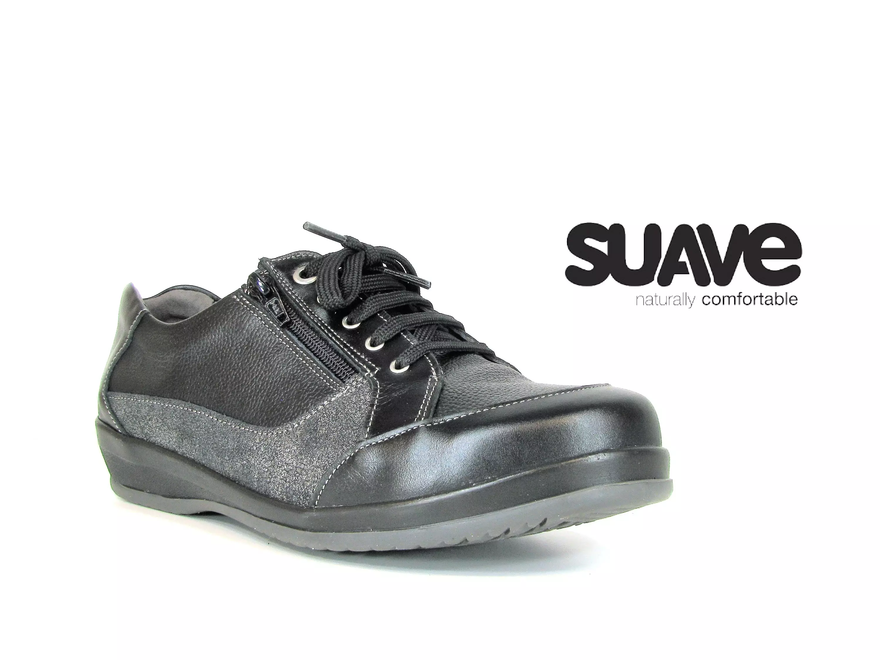 Suaven tilava kävelykenkä, jonka päälliosa on valmistettu aidosta ja laadukkaasta nahasta. Edessä nauhakiinnitys, jonka avulla kengän saa säädettyä juuri jalkaan sopivaksi. Päällisen ulkosyrjällä vetoketju, jonka avulla kengän saa helpommin puettua jalkaan. Kengän sisäosat ovat kauttaaltaan pohjallisen pintaa myöten miellyttävän pehmeää tekstiiliä, ja irrotettava pohjallinen on hyvin pehmustettu sekä anatomisesti muotoiltu. Air Function ominaisuus aikaansaa ilman kiertämisen kantapään ja jalkapohjan välillä. Synteettisestä materiaalista valmistettu kevyesti kuvioitu ulkopohja on joustava, mutta samaan aikaan todella tukeva. Pohjan korkeus kannassa on n. 3-3,5cm. Näissä kevyissä, antiallergisissa kengissä on huomioitu myös ekologisuus, iskunvaimennus sekä erityisen tilavat sisäosat.