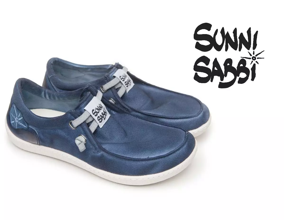 Sunni Sabbin käsintehdyt kävelykengät, jotka on valmistettu värjätystä canvaksesta sekä kumista. Edessä venyvät nauhat (ei solmittavat) tuomassa kengän päälle tarvittaessa lisätilaa ja mahdollistamassa parhaan mahdollisen istuvuuden. Valmistuksessa on käytetty perinteistä vulkanointi-tekniikkaa, jossa käytetään hyödyksi vain lämpöä sekä painetta. Sisäosat on valmistettu pehmustetun ja irrotettavan pohjallisen pintaa myöten tekstiilistä. Kengän kumisen ulkopohjan muotoilu on paljasjalkakenkämäinen. Mukavan tilava lesti. Kengässä on ihanan kesäinen sitruunamainen tuoksu pohjaan upotetun hajupalan ansiosta. Tämä kenkä on valmistettu Espanjassa. Kengät suositellaan pesemään käsin käyttäen kylmää vettä sekä neutraalia saippuaa. Mikäli kenkä konepestään, tulee käyttää pesupussia, lyhyttä ohjelmaa, kylmää vettä sekä pientä pesuainemäärää välttäen jauhemaista pesuainetta sekä linkousta. Ilmakuivattava.