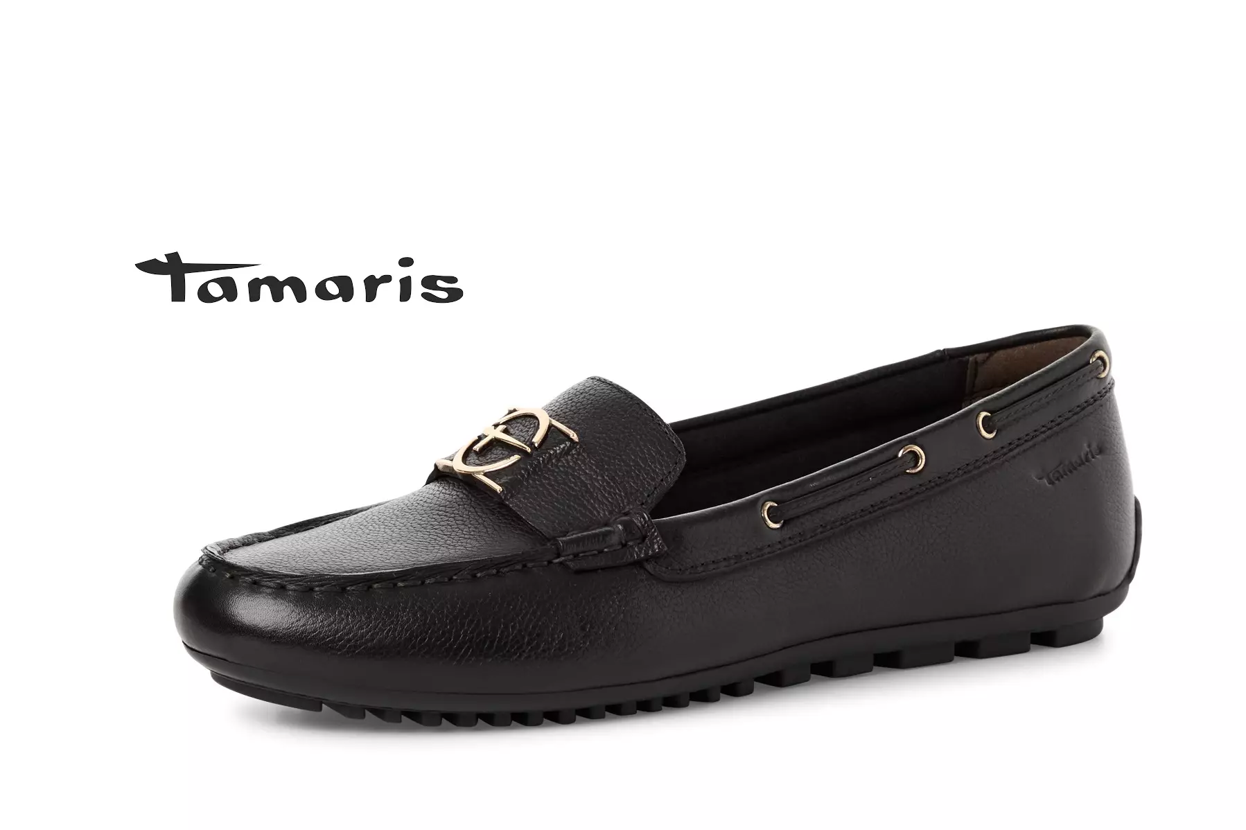 Tamariksen huipputyylikäs loafer, jonka päällinen on valmistettu aidosta ja laadukkkasta pintanahasta. Edessä suorakaiteen muotoinen osio, jonka keskellä kullanvärinen yksityiskohta. Kengän... Lue lisää