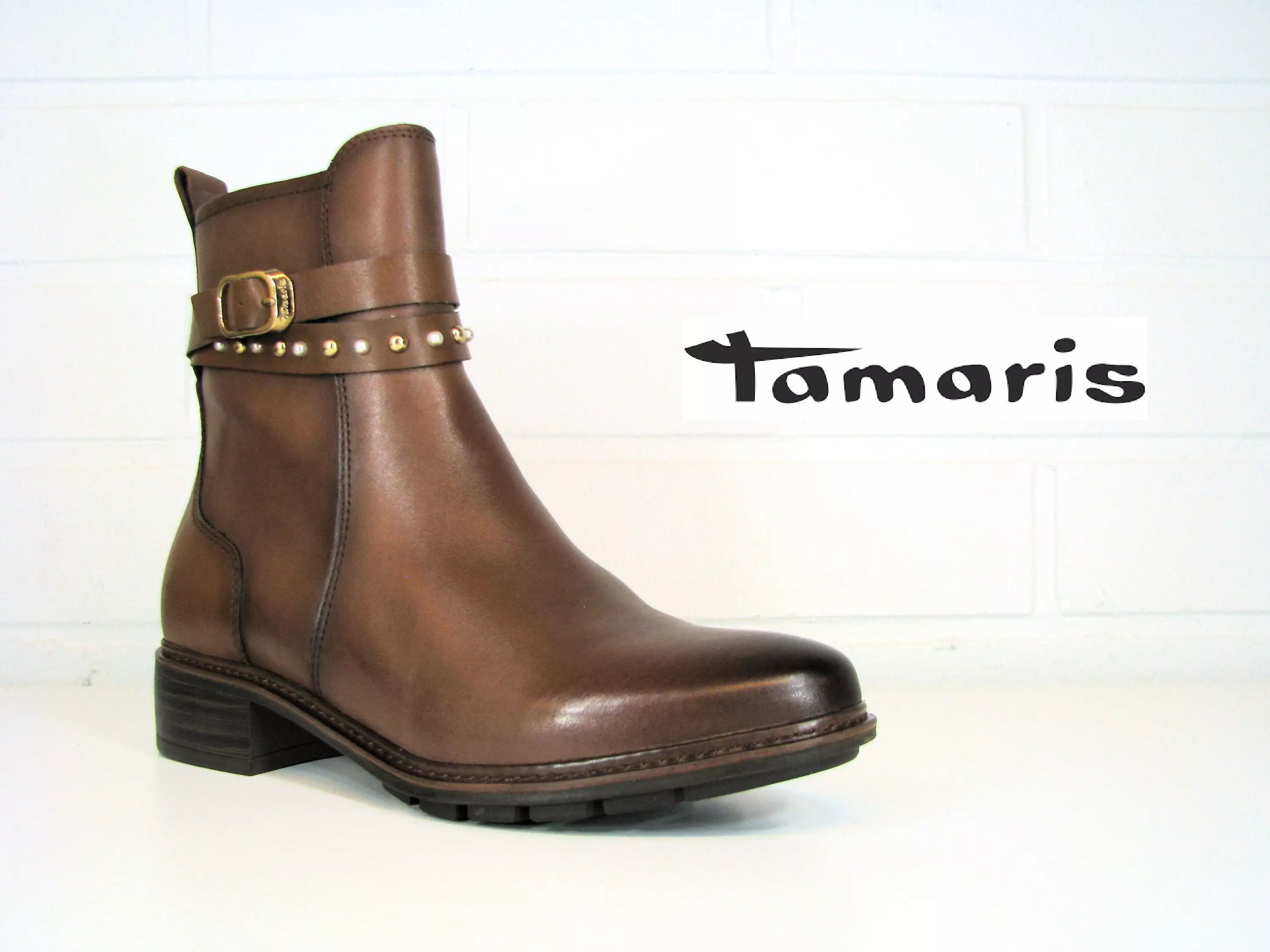 Tamariksen huipputyylikkäät nilkkurit, joiden pinta on valmistettu aidosta ja laadukkaasta nahasta kantaosan nahkajäljitelmäpalaa lukuunottamatta. Ulkosyrjällä kaksi remmiä, joista toisessa solki ja toisessa vuorottelee kauniit hopeiset ja valkoiset koristehelmien puolikkaat. Sisäsyrjän vetoketju mahdollistaa helpon pukemisen. Kengissä on kevyt ja ihanteellisen pehmeä tekstiilivuori sekä irrotettava pehmustettu pohjallinen. Tukeva kumisekoitteesta valmistettu ulkopohja on todella hyvin kuvioitu, ja se ehkäisee tehokkaasti kengän luistamista erilaisilla pinnoilla. Erillisen kannan korkeus n. 3-3,5cm.