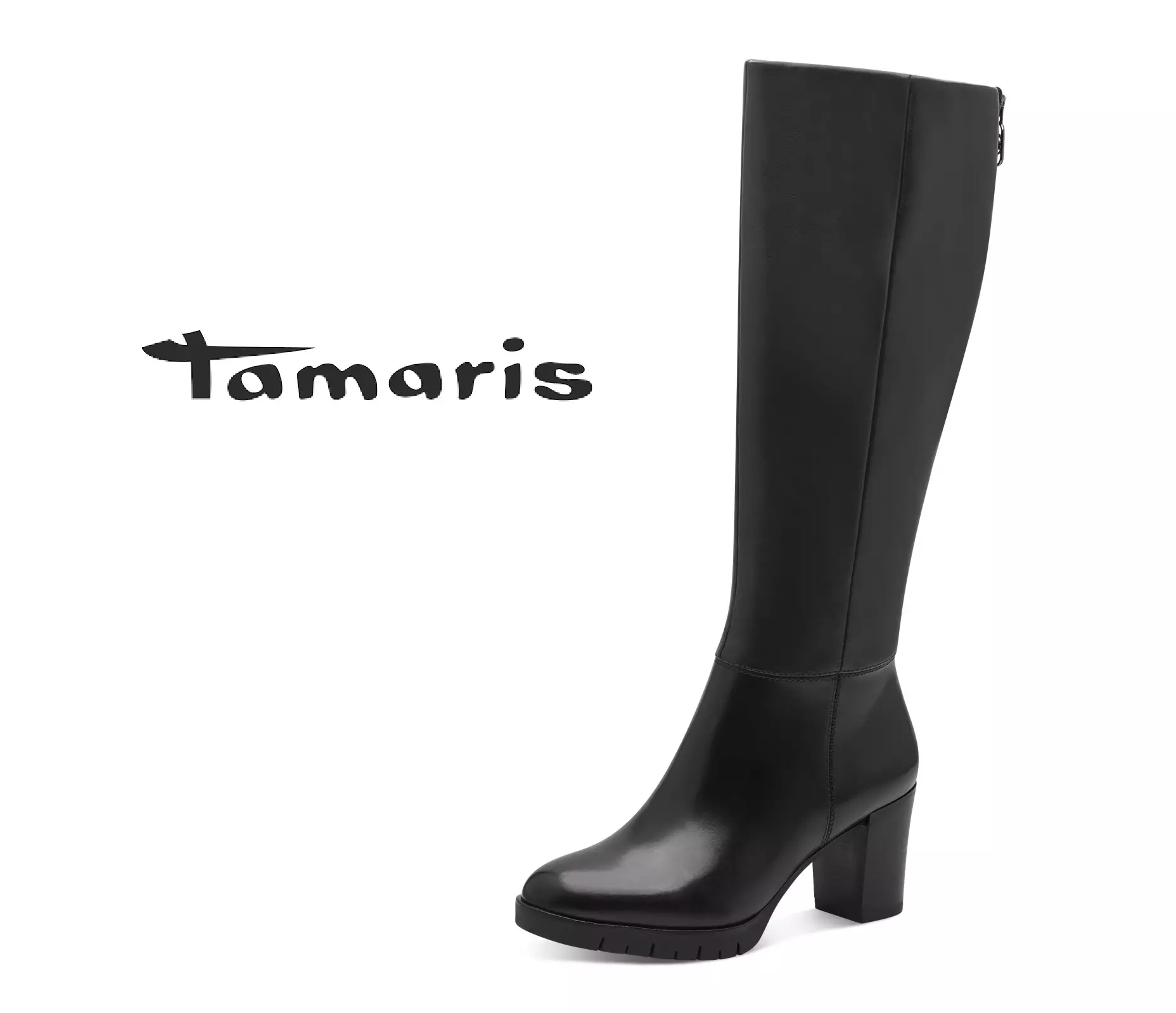 Tamariksen upeat pitkävartiset saappaat, joissa on tyypillistä saappaan vartta tilavampi L-varsi. Varran yläosassa n. 18 cm pitkä vetoketju, jonka avaamalla varteen saa entistä enemmän lisää tilaa. Päällinen on valmistettu aidosta ja laadukkaasta nahasta sekä synteettisestä materiaalista. Saappaissa on sisäsivulla vetoketjukiinnitys helpottamassa pukemista. Kevyt tekstiilivuori on miellyttävän pehmeä. Siron mutta tukevan koron korkeus on n. 7,5 cm. Kuvioitu kumisekoitepohja.