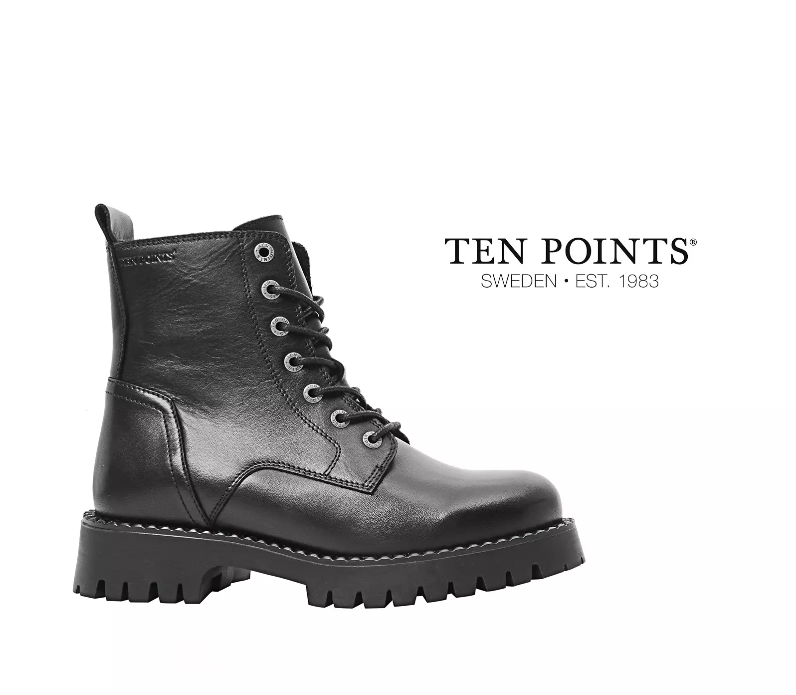 Ten Pointsin klassiset ja tyylikkäät Penny maiharit, jotka on valmistettu aidosta laadukkaasta nahasta. Edessä nauhat helpottamassa kengän säätämistä juuri jalkaan sopivaksi, ja sisäsyrjällä vetoketju helpottamassa pukemista. Sisäosissa kevyehkö mutta lämmin tekstiilivuori. Tukeava kumisekoitepohja on todella hyvin kuvioitu. Pohjan korkeus kannassa n. 4 cm ja päkiän kohdalla n. 2,5 cm. Valmistettu Portugalissa. Löydät tämän kengän ruskeana tuotenumerolla 60610.