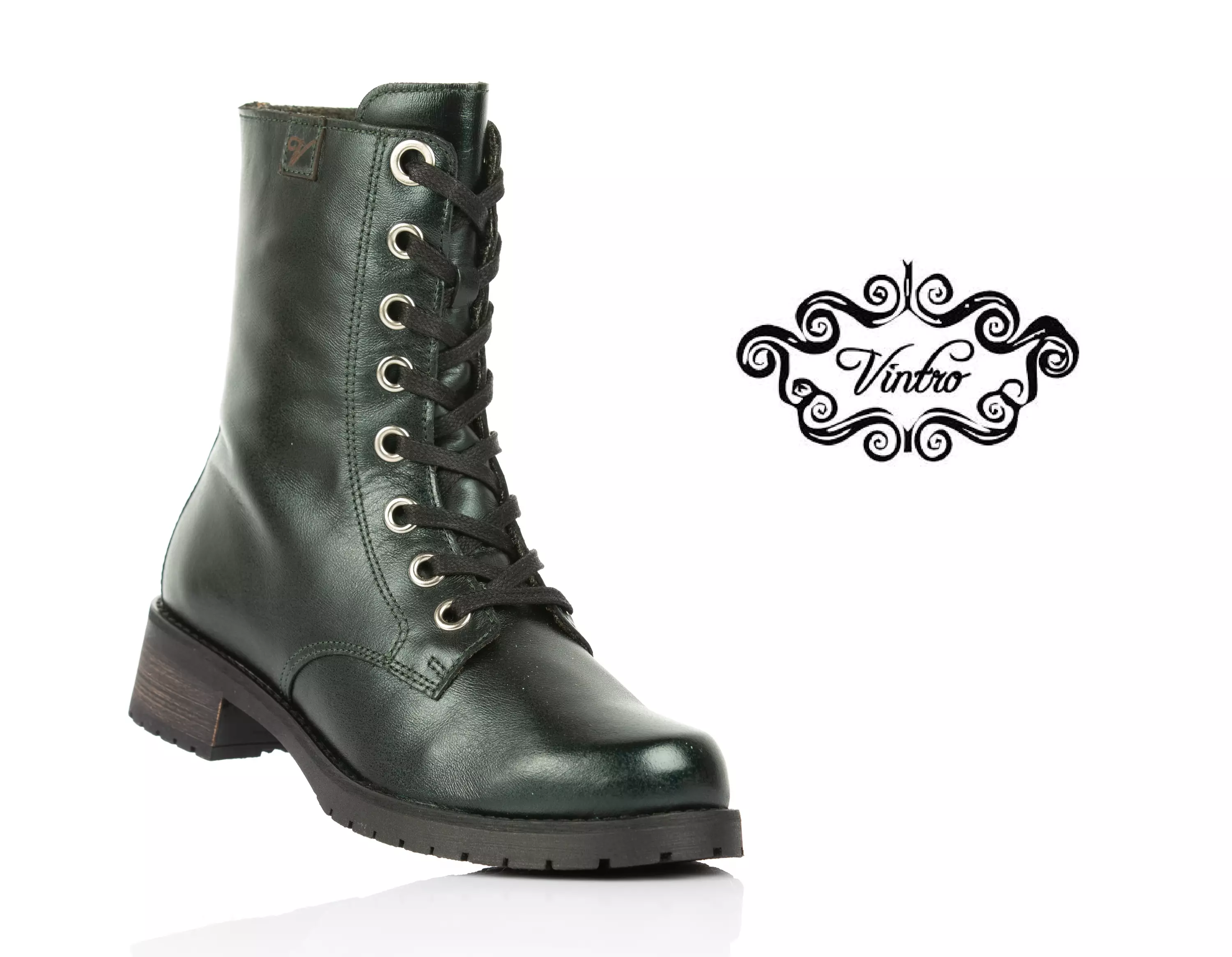 Vintron Suomessa suunniteltu huipputyylikäs maihari, jonka päälliosat on valmistettu aidosta ja laadukkaasta metallinhohtoisesta nahasta. Nilkkurin etuosassa on tukevat nauhat, joiden avulla kenkä on helppo säätää juuri jalkaan sopivaksi. Sisäsivulla vetoketju helpottamassa pukemista. Erikoisominaisuutena nilkkuri on käsitelty vettähylkiväksi, mikä tekee kengästä monikäyttöisen erilaisissa sääolosuhteissa. Pehmeässä sisävuoressa on luonnollista villaa, jonka ansiosta villasekoite on kestävä, hengittävä sekä lämmin. Äärimmäisen pehmeä sekä hengittävä nahkapohjallinen. Tukeva, mutta miellyttävän joustava kumisekoitepohja on hyvin kuvioitu, ja materiaalivalinta estää yhdessä kuvioinnin kanssa tehokkaasti pohjan luistamista liukkaillakin pinnoilla. Pohjan korkeus kannassa n. 3,5-4 cm ja päkiän kohdalla n. 1,5 cm.