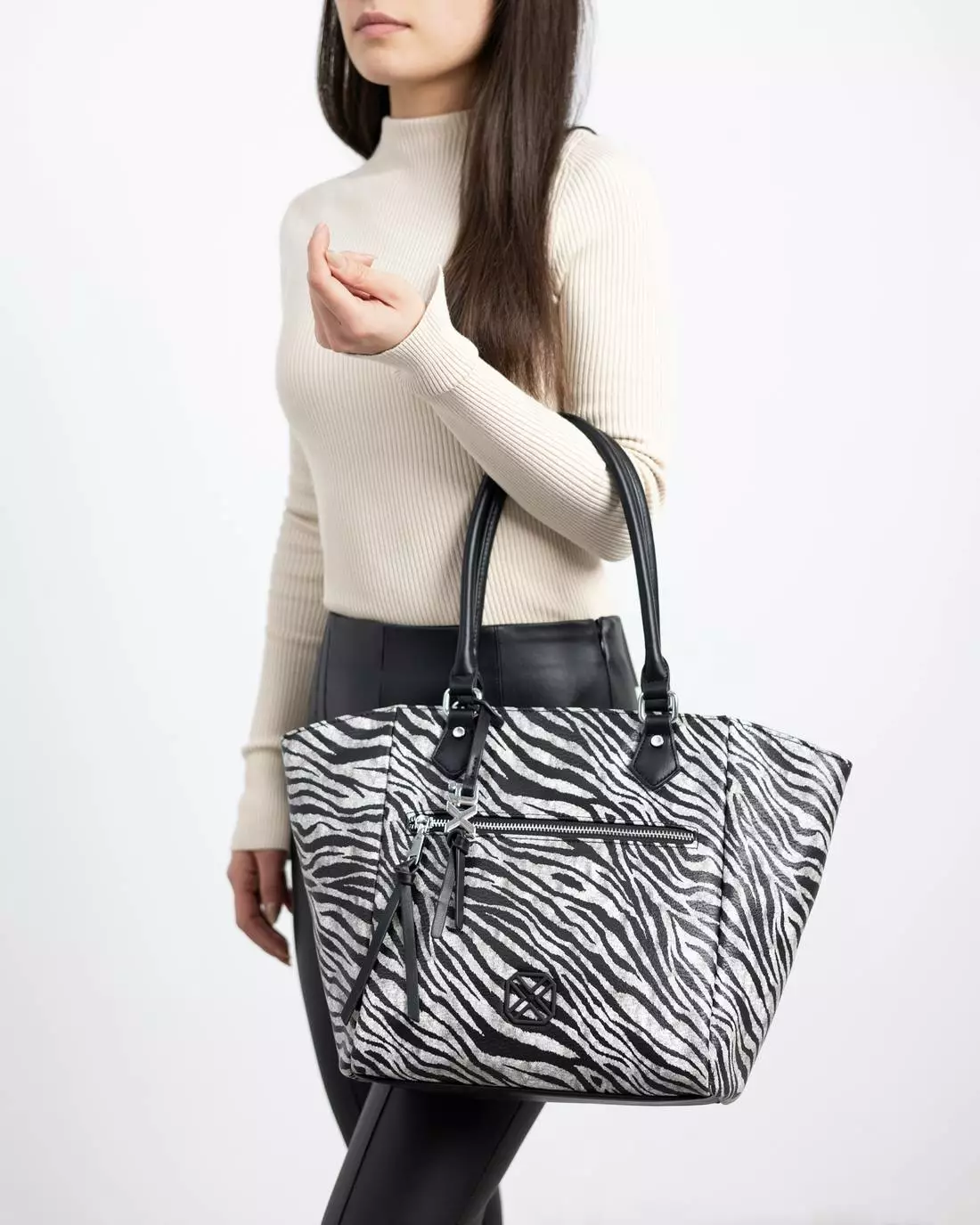 XTI:n vetoketjullinen eläinkuosinen laukku. Molemmilla puolilla vetoketjulliset sivutaskut. Sisäosassa laukun toisella sivulla vetoketjullinen ja toisella sivulla avoin sisätasku. Valmistettu... Lue lisää