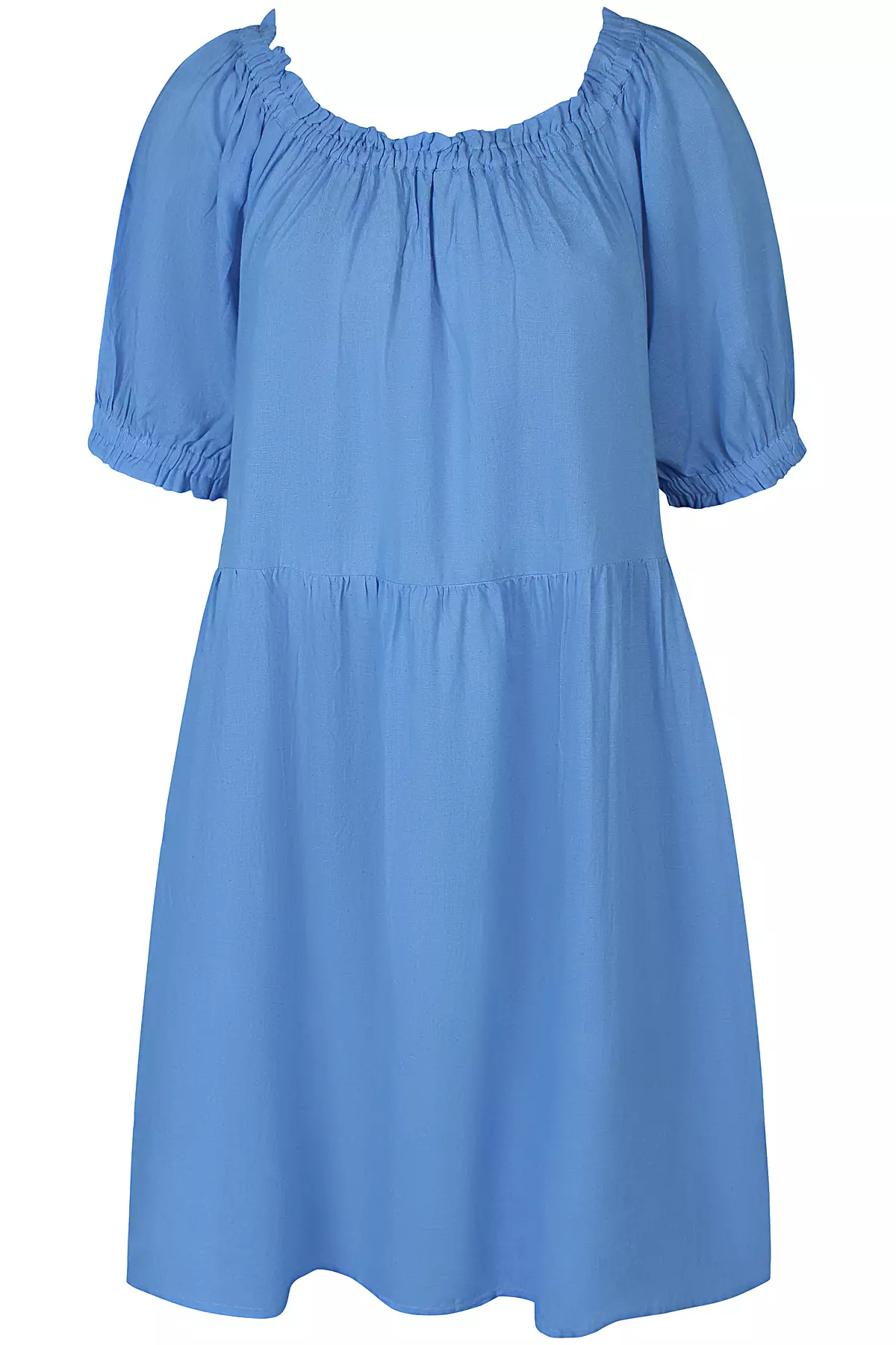 Ze-zen Lucia 708 tunika. Päänitessä kaunis off shoulders -muotoilu. Lyhyet, hieman pallomaiset hihat. Pääntiessä ja hihansuissa kauniit rypytykset. Molemmilla sivuilla taskut.