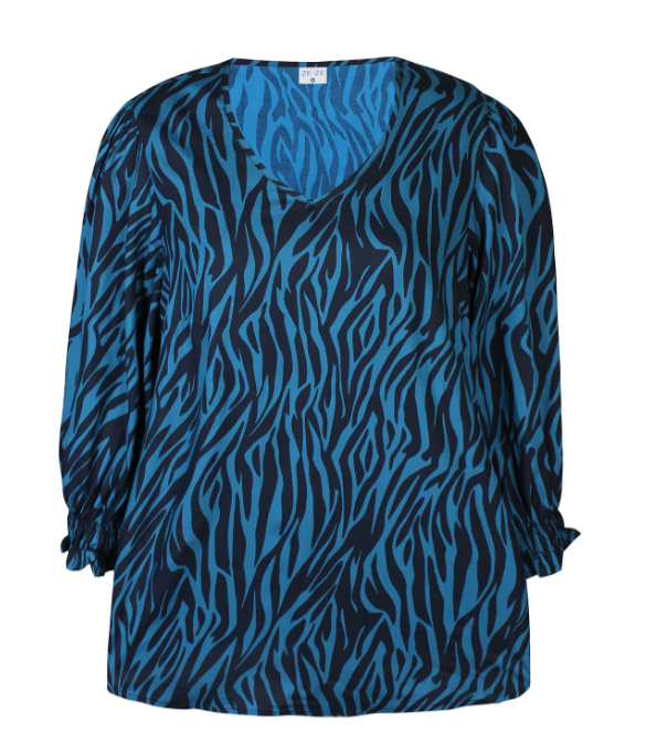 Ze-zen Rita 328 paita, jonka raitakuviointi muistuttaa seepran raitaa. Kaula-aukossa kevyesti v-mallinen muotoilu. 3/4 hihojen suissa kaunis rypytys.