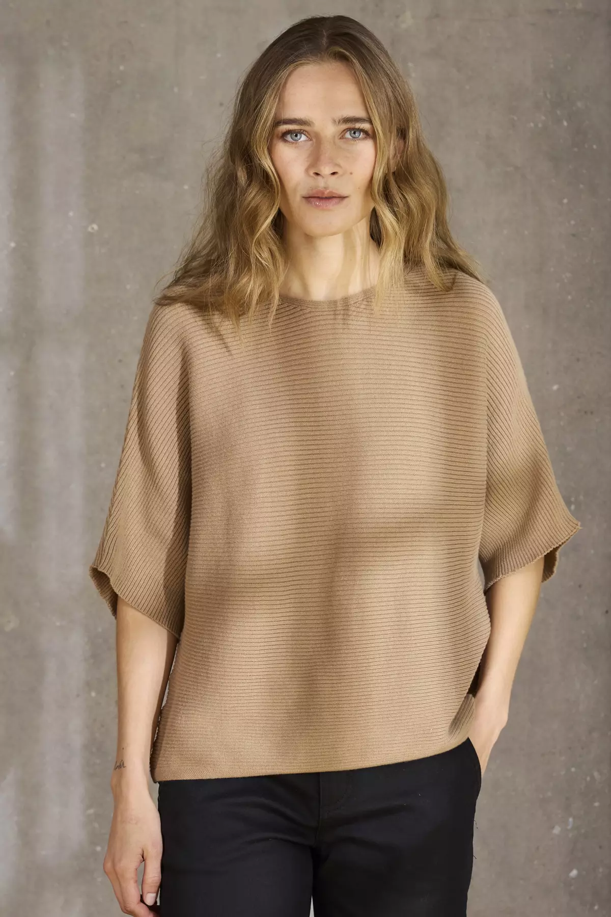 Ze-zen laatikkomainen Didi 088 neulepusero, jonka puolipitkissä hihoissa pyöristetyt kainalot. Pyöreä pääntie.