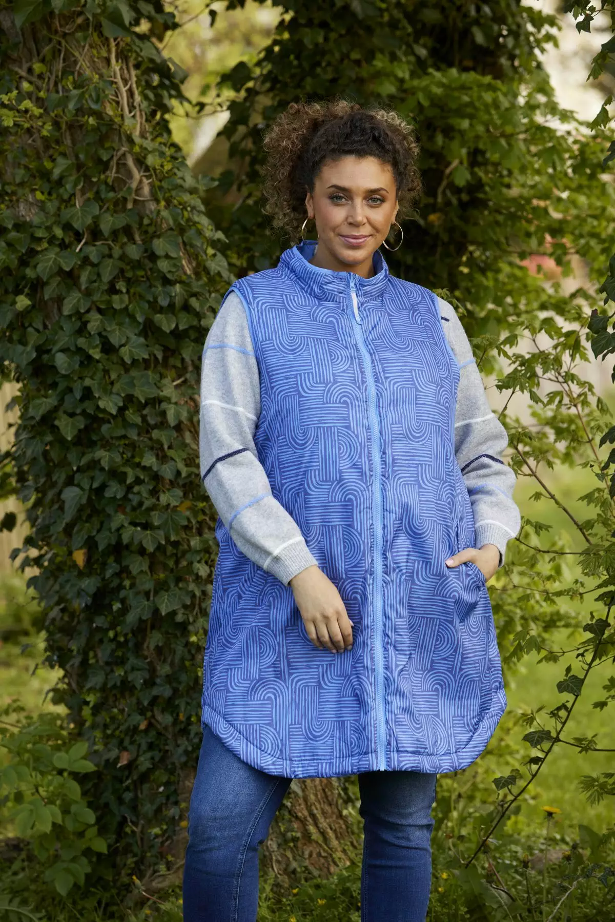 Zhenzin raikas Elea 608 kääntöliivi, jossa toinen puolista yksivärinen, ja toisessa ihastuttavaa graafista kuviointia. Etuosan molemmilla puolilla taskut. Yksivärisen puolen niskassa heijastinpala.