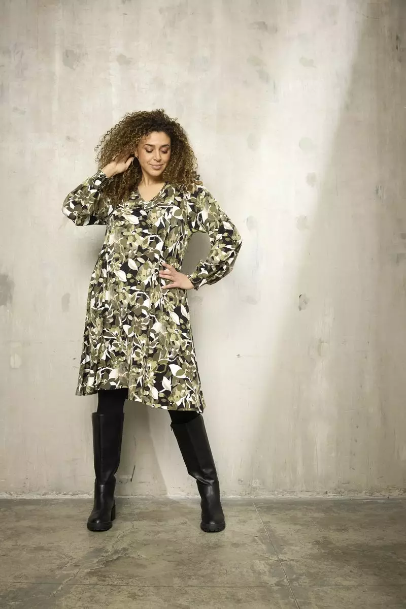 Zhenzin Saki 1026 mekko, jossa v-mallin pääntie ja täyspitkät hihat. Hihojen suissa kaunis smokkirypytysmäinen resori. Materiaalina 92% viskoosi ja 8% elastaani. Kestää 30-asteisen konepesun.... Lue lisää