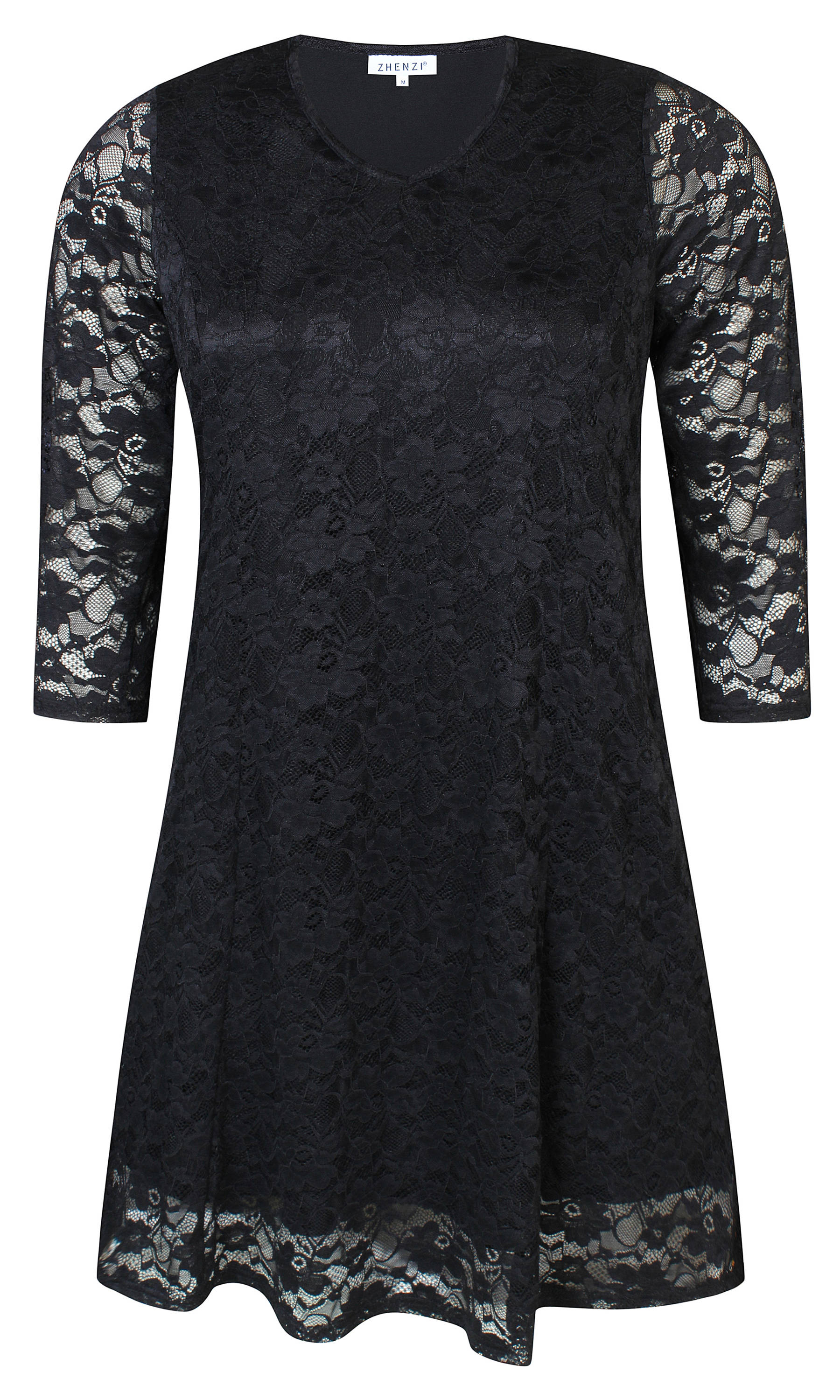 Zhenzin upea pitsimekko, jossa puolipitkät hihat. Musta kiinniommeltu alusmekko/vuori lukuunottamatta hihoja. Päälliosan materiaali 99%polyamidia, 1% elastaania, ja vuoren materiaali 100% viskoosia, mikä tekee siitä ihanteellisen kevyen ja pehmeän ihoa vasten. Kestää 30-asteisen konepesun. Saattaa kutistua pesussa 3%. Koossa S pituus olalta helmaan n. 100cm ja kainalosta kainaloon n. 46cm. Huomaathan Zhenzin käyttämät reilut koot; S = 42/44 M = 46/48 L = 50/52 XL = 54/56 XXL = 58.