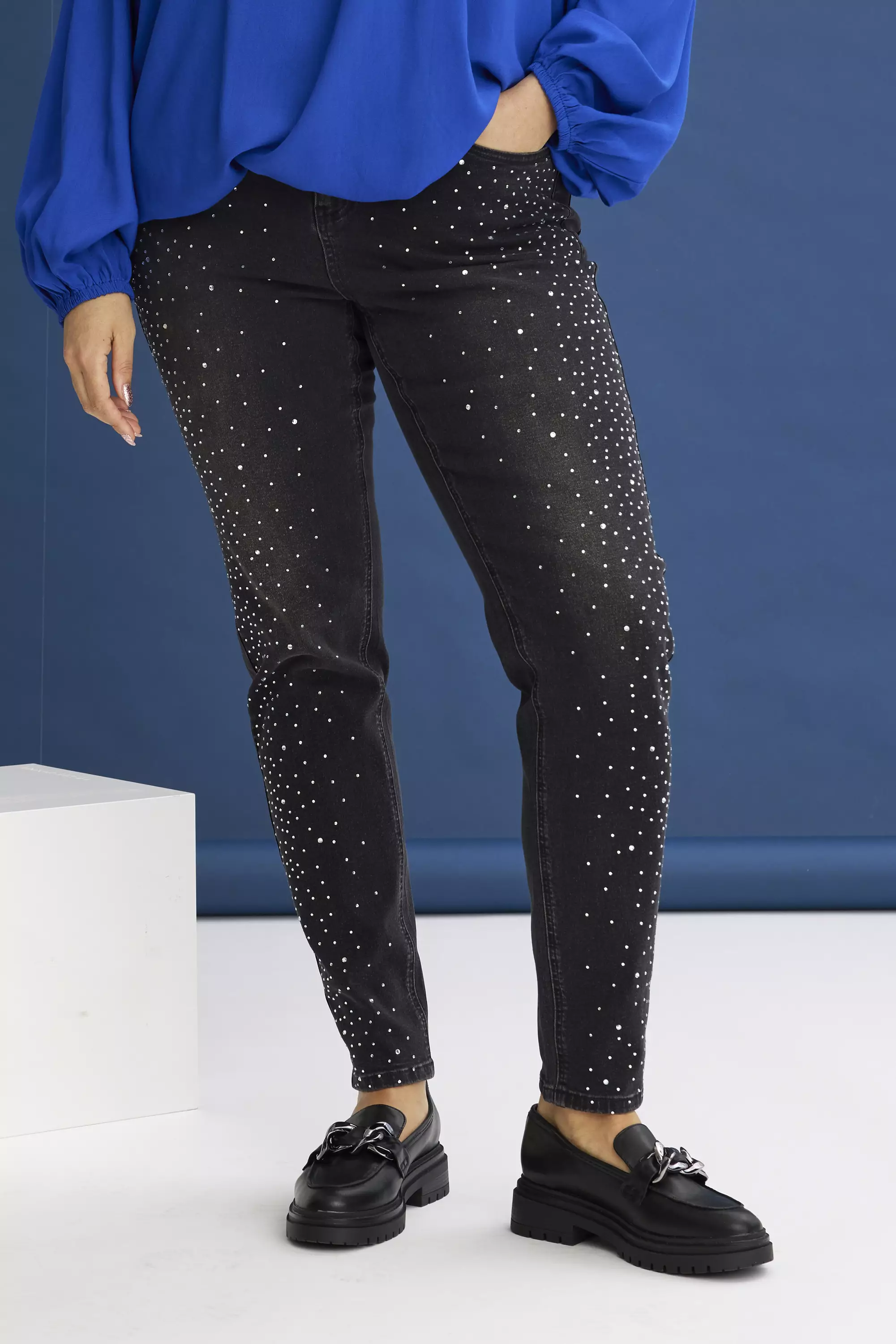 Zhenzi Stomp 115 housut, joissa lahkeiden etuosan ulkoreunoja koristaa kauniisti kimaltelevat koristekivet! Näissä joustavasta materiaalista valmistetuissa farkkumaisessa housuissa on legging fit... Lue lisää